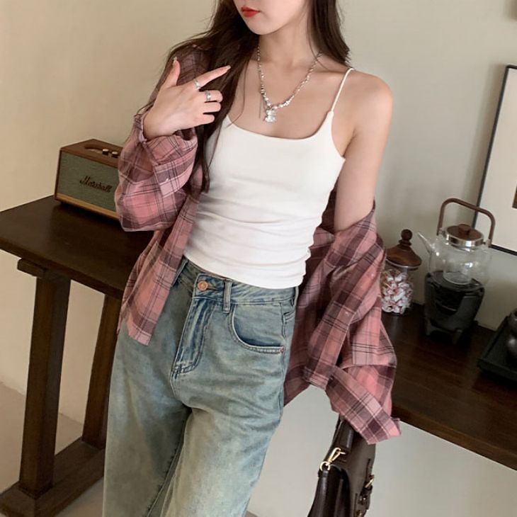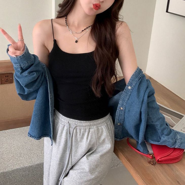 キャミキャミソールインナールームウェアノンワイヤーカップ付きタンクトップ綿コットンノンストレス下着無地夏カジュアルきれいめシンプルレディース韓国ファッション