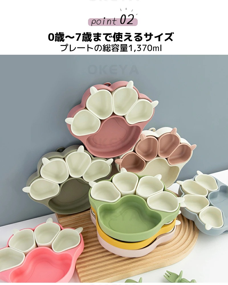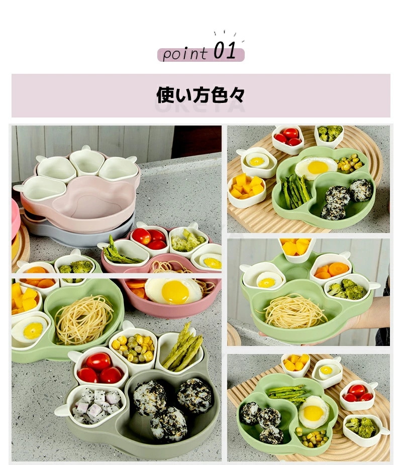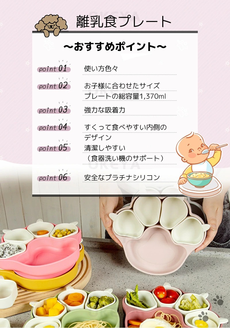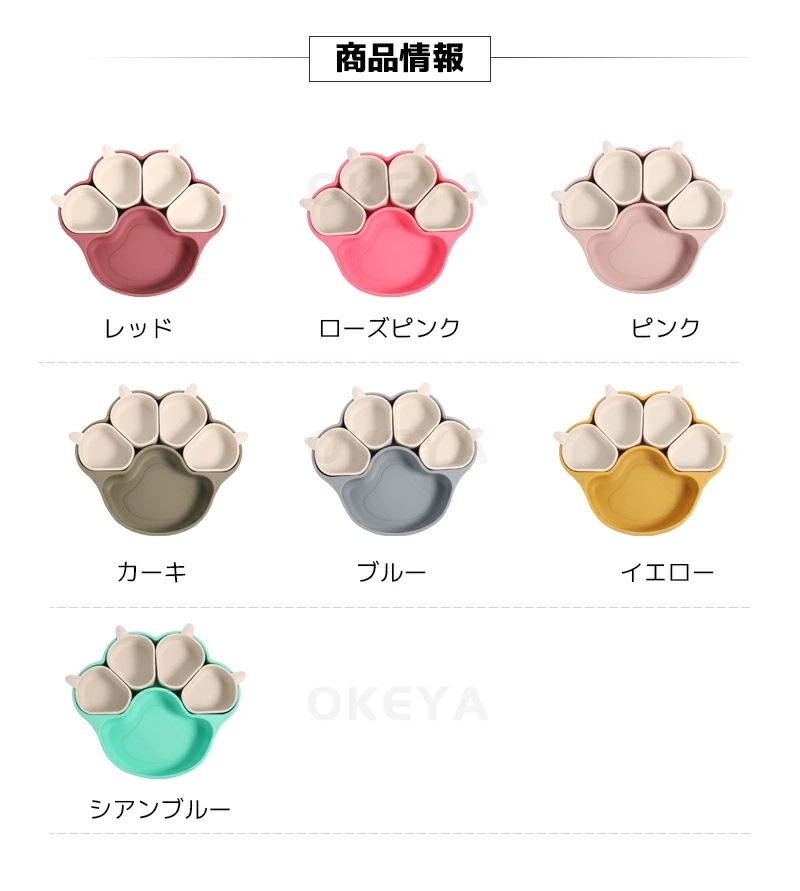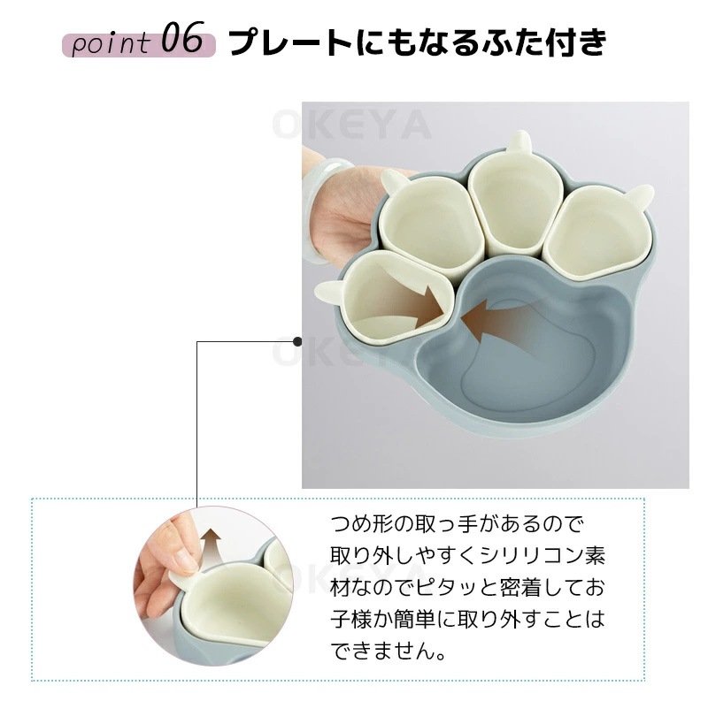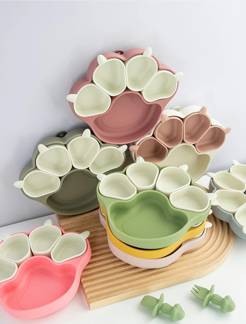 ベビー食器 離乳食プレート 吸盤ボウル 猫の爪 離乳食 食器 BPAフリー 食品級シリコン 吸盤つき ひっくり返らない 滑り止め 仕切り 小皿 ベビー食器 子供用食器 赤ちゃん お食事セット 子供 キ