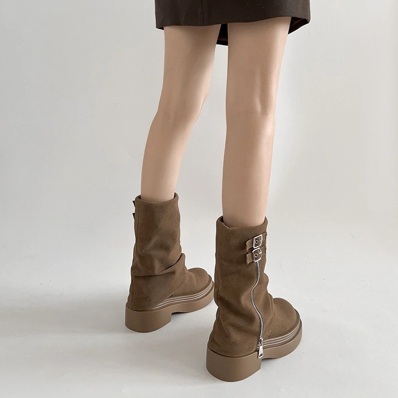 スタイリッシュでレトロな英国風厚底マーチンブーツレディース2024新作秋冬パンツショートブーツ ショート ミドルブーツ