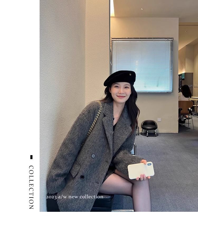 大人っぽチェスターコート プレミアム感 グレー スーツ ツイードコート レディース 秋冬 厚手 ニッチ イミテーション ウール カシミア ツイード コート 韓国ファッション