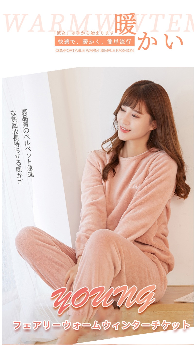 裏起毛 パジャマ レディース ルームウェア ふわもこ 超保温モテ 裏起毛 超保温ふんわり肌触りスウェット ズボン 上下セット セットアップ