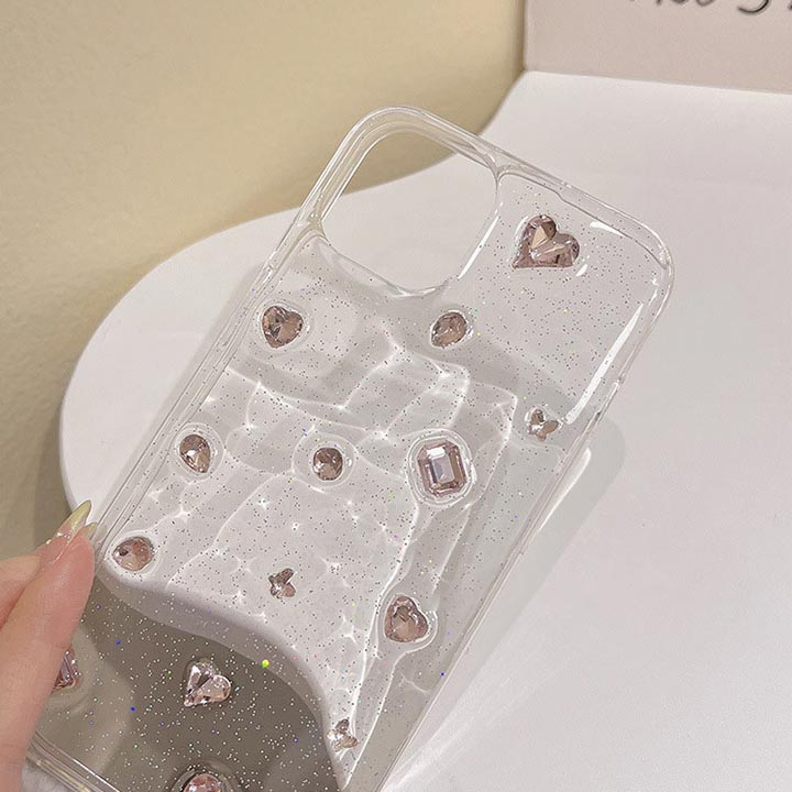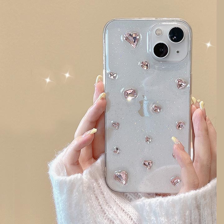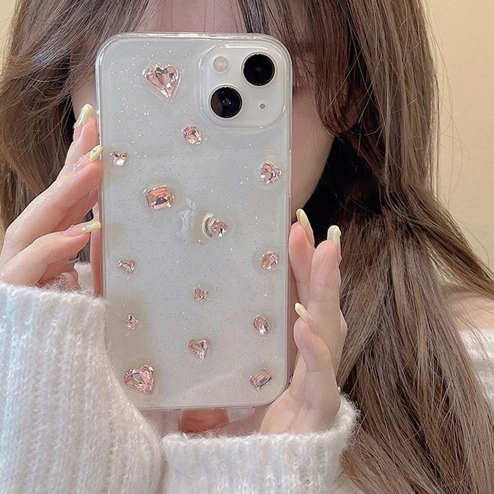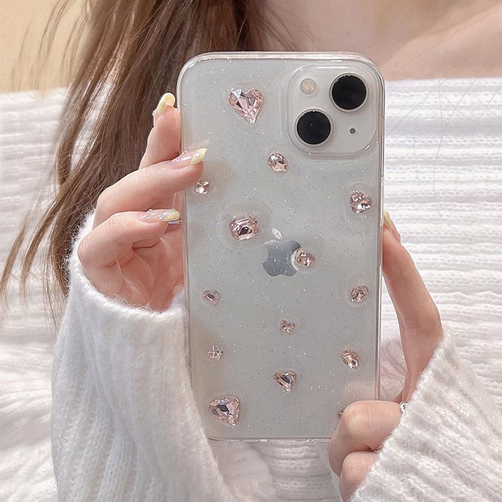 人気新作 iPhone15ケース 透明 クリア おしゃれ 大人可愛い ラインストーン ビジュー ピンク ラメ アップルロゴ アップルマーク iphoneケース 15ケース iPhone12 iPho
