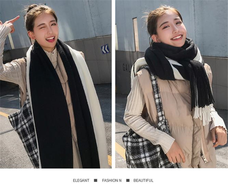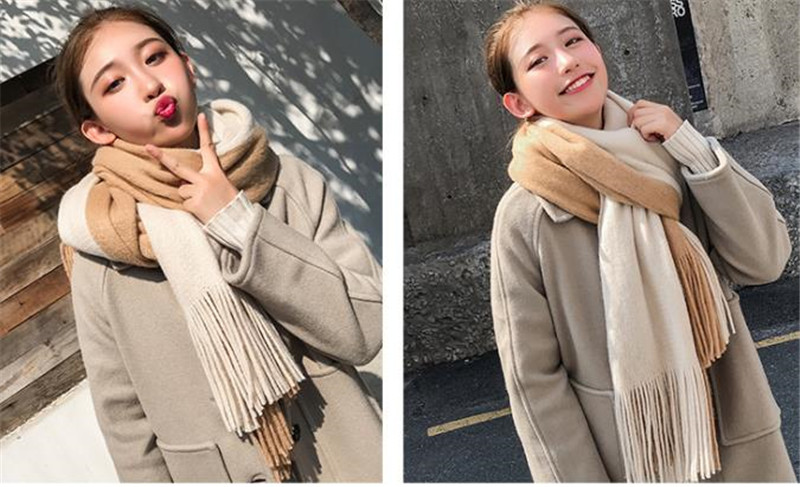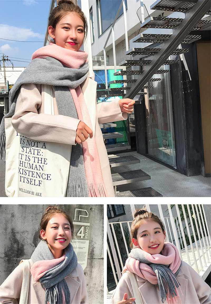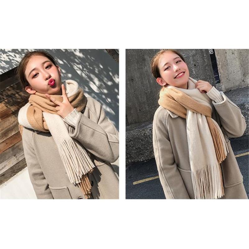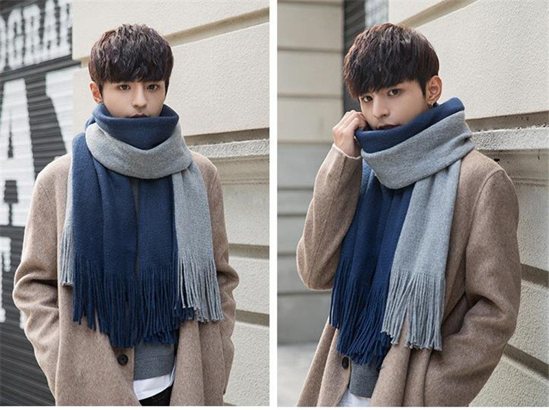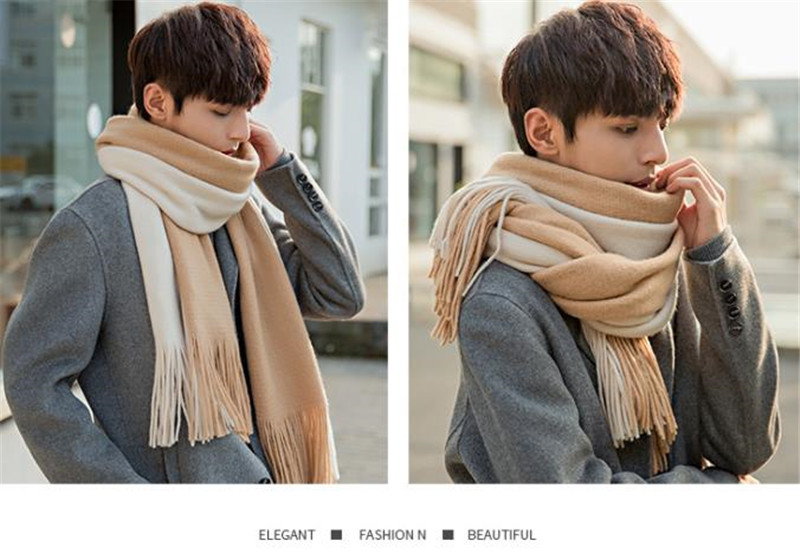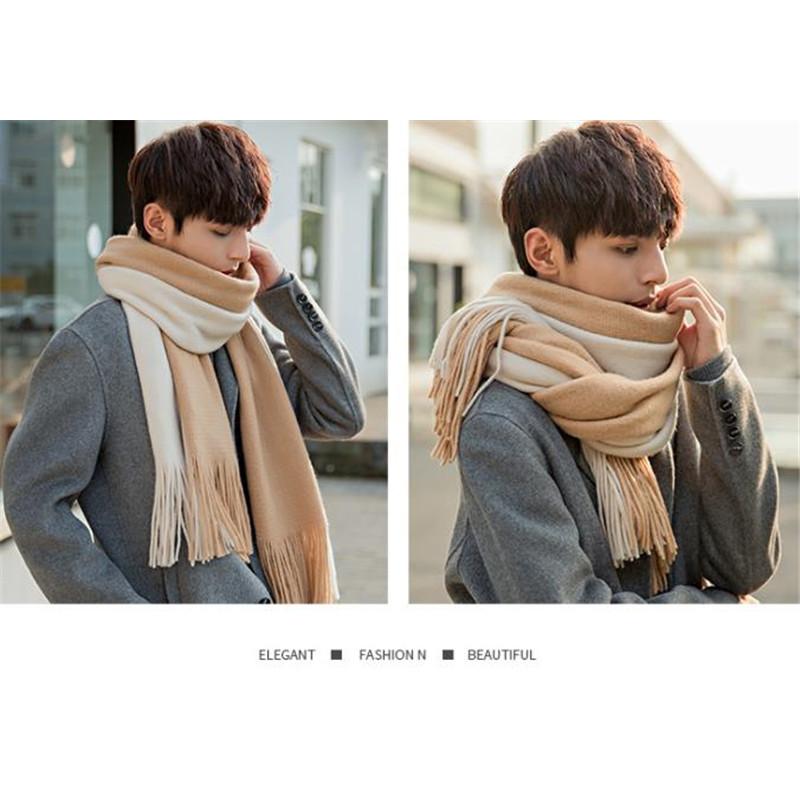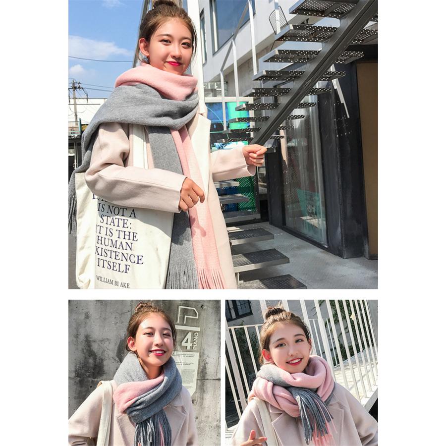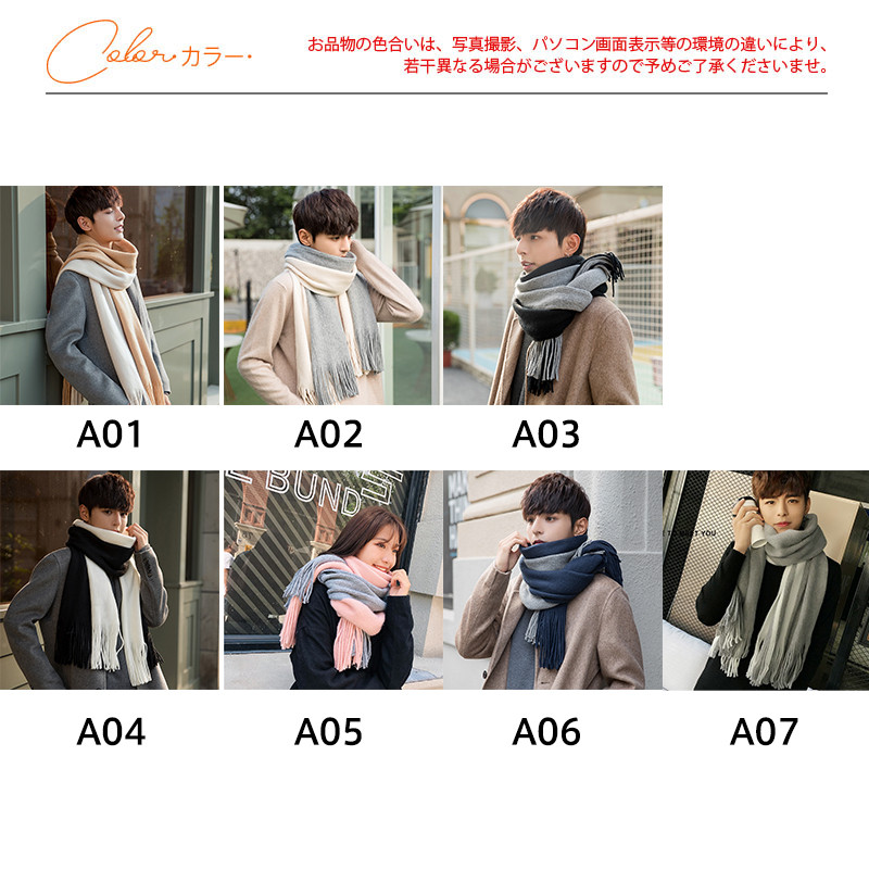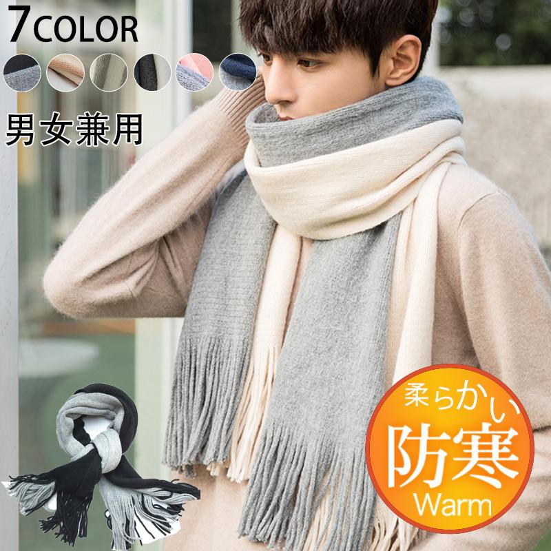 半額セール メンズマフラー ロング 大判 スカーフ バイカラー フリンジ 保温 男女兼用 カジュアル おしゃれ ペア 秋冬 厚手 通勤通学 紳士