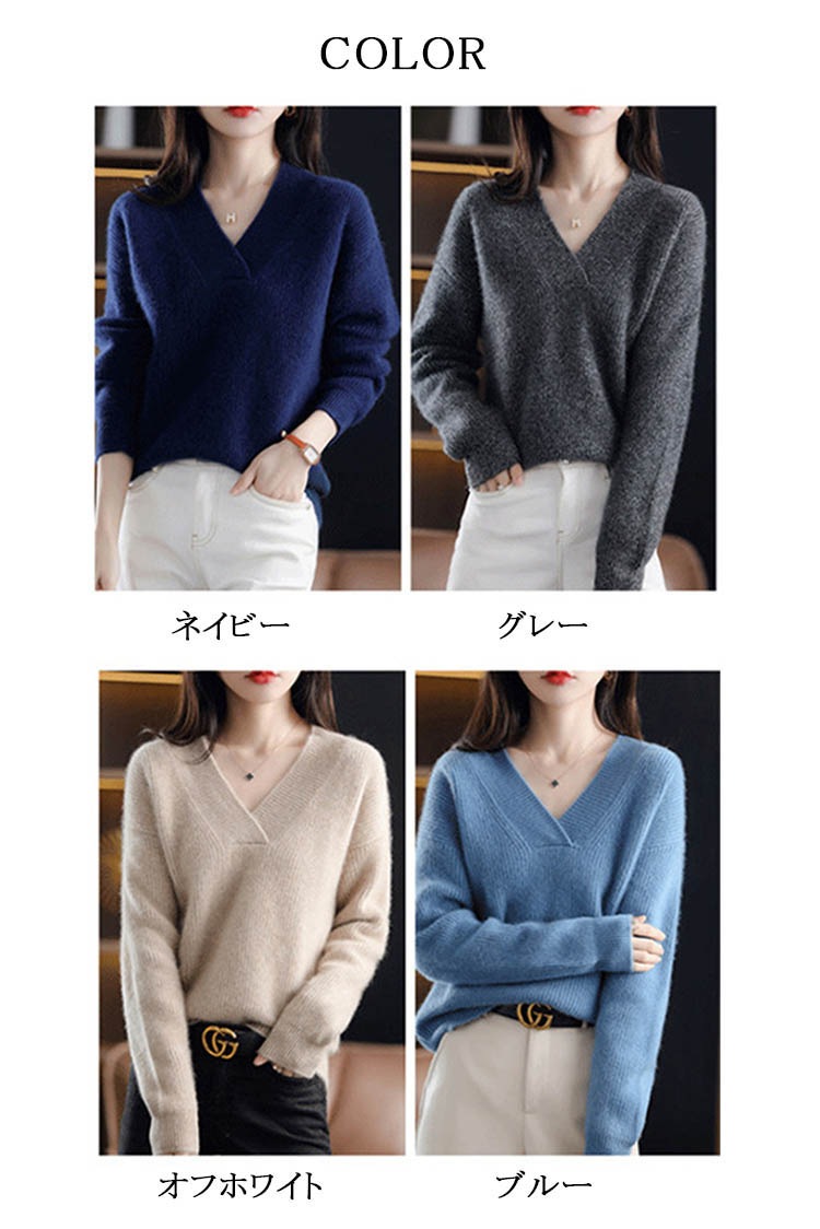ニットトップス レディース 秋冬 vネックニット 長袖 ニットセーター プルオーバー きれいめ お洒落 ニットソー トップス キレイ スリムフィット フェミニン