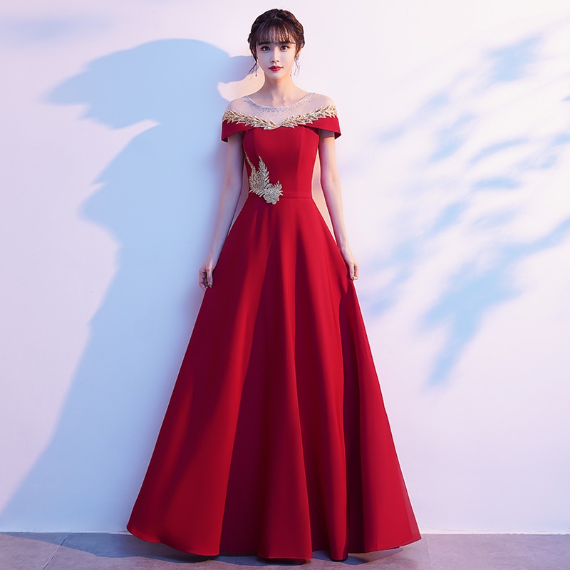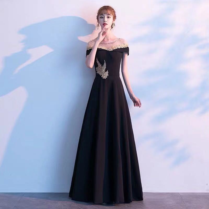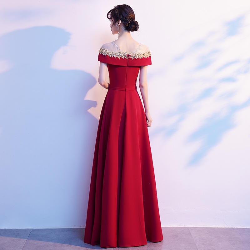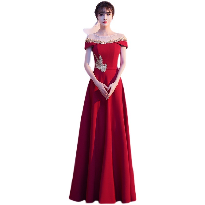 高貴な気質のロングドレス 2025 ワンショルダードレス女性スリム宴会ホストドレス ドレス