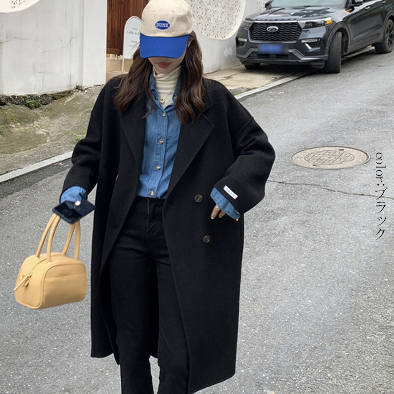 チェスターコート 秋冬 レディース 黒 テーラードコート コート ウールコート ロング丈 大きいサイズ アウター 長袖 コート ロング テーラード 長そで 無地 シンプル 柔らかい 着回し 通勤 ゆっ