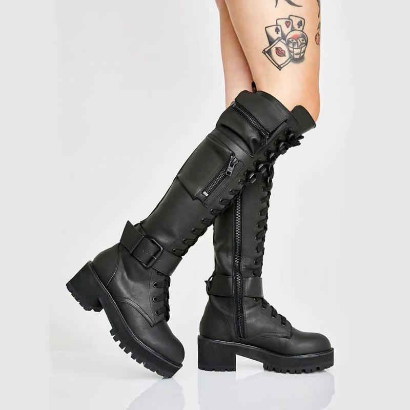 ロングブーツ レディース 美脚 ジョッキーブーツ おしゃれ 厚底ブーツ レースアップ 編み上げ おしゃれ ファッション 歩きやすい ブーティー