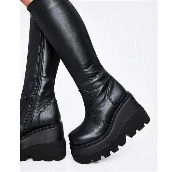 ロングブーツ レディース 美脚 ブーツ 大きいサイズ 長靴 おしゃれ ロング丈 ローヒール 履きやすい 厚底 防水 カジュアル 秋冬 疲れにくい