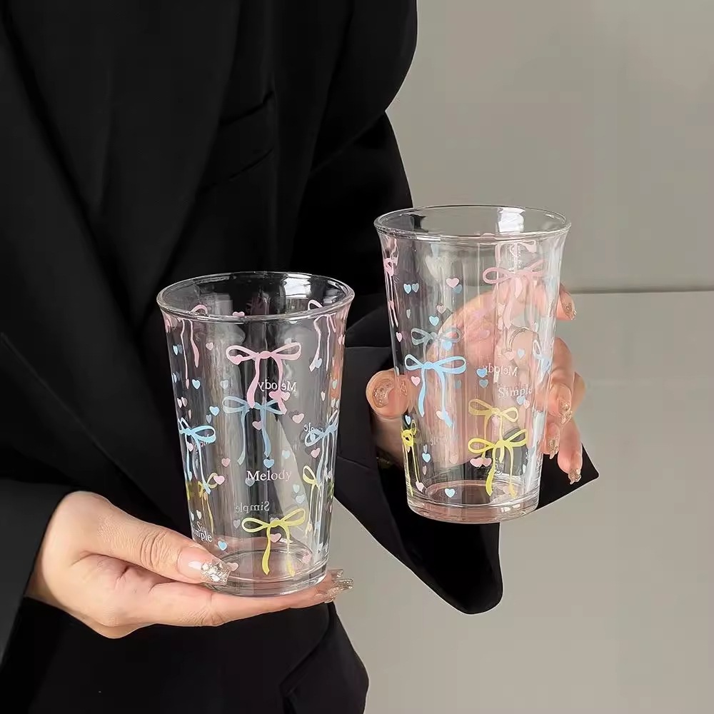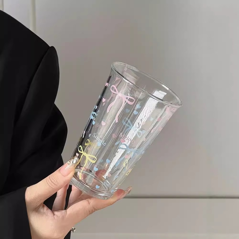 水カップ夏女性insプリントグラスジュースカップ水透明カップかわいい朝食カップ グラス