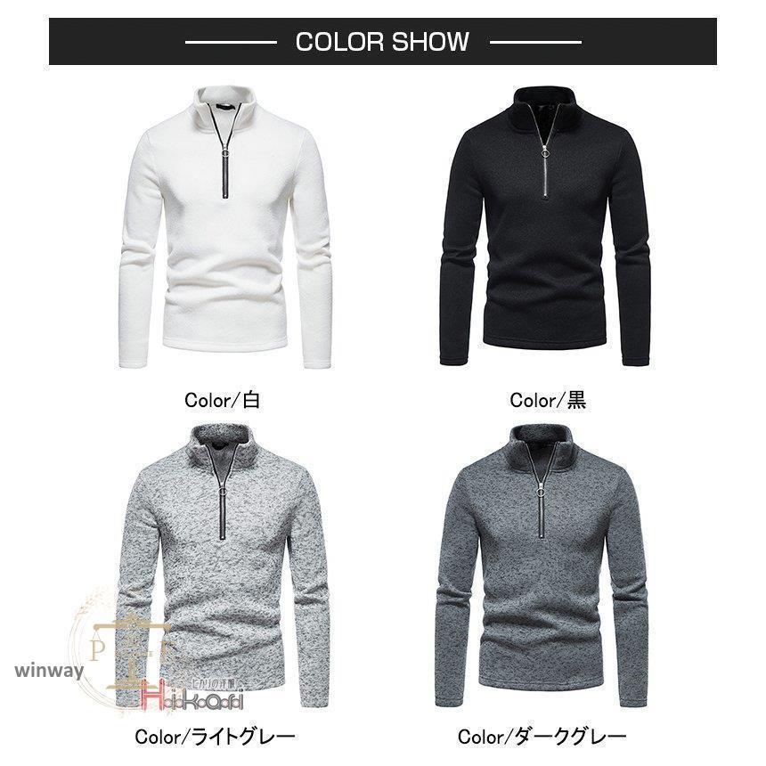 ハーフジップ トレーナー メンズ ハイネック スウェット おしゃれ 無地 40代 50代 長袖 ジッパー インナー 秋物 冬服 ポロシャツ
