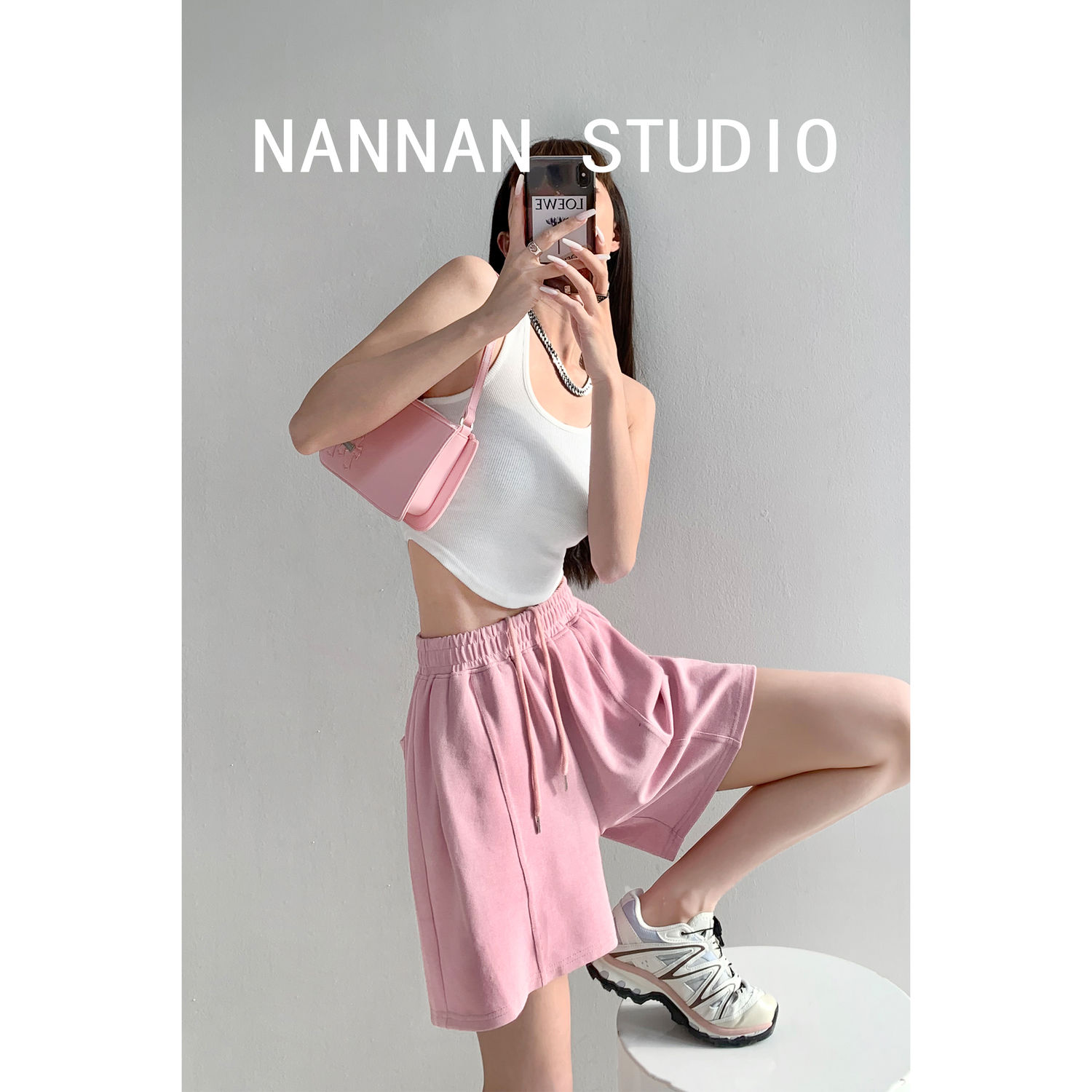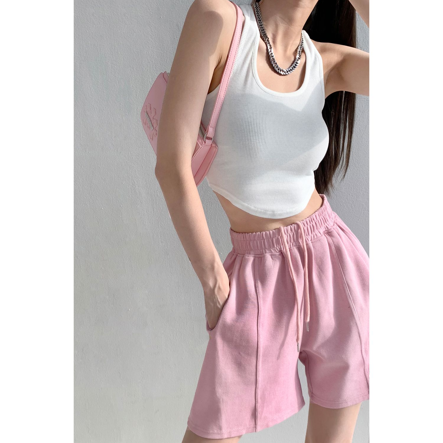 イージーパンツ スポーツパンツ 夏の薄手 ハイウエスト ストレートシリンダ やせて見える ワイドパンツ あちこち ロープ引き やせて見える 五分ズボン