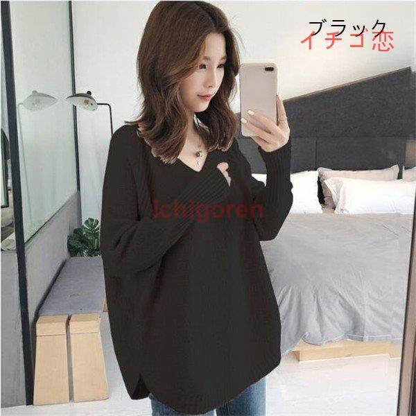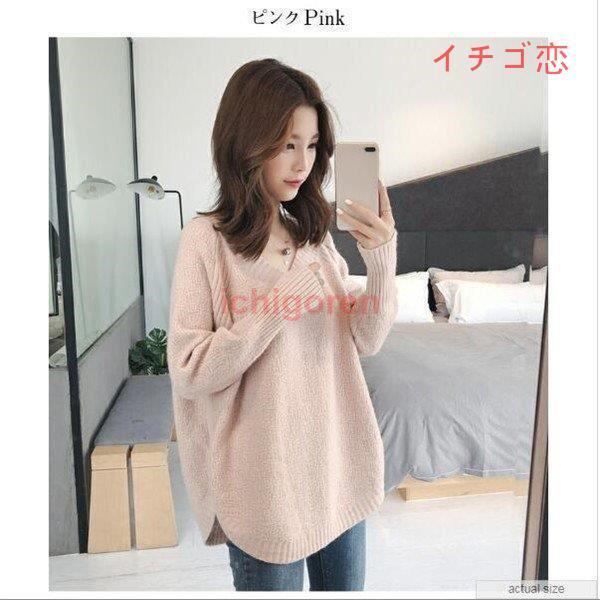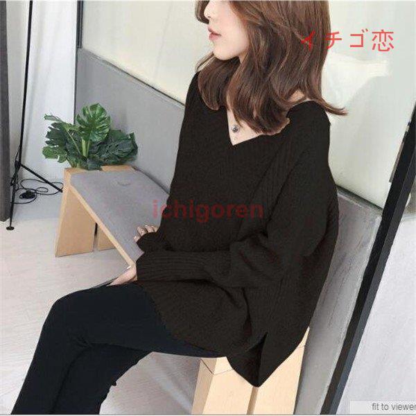 韓国ファッショニット セーター Vネック レディース トップス おしゃれ 可愛い ホワイト ニット