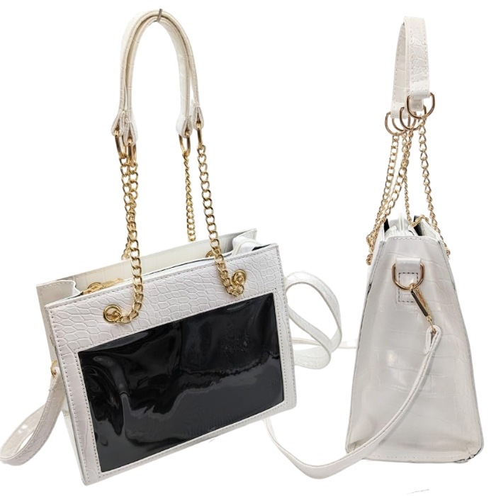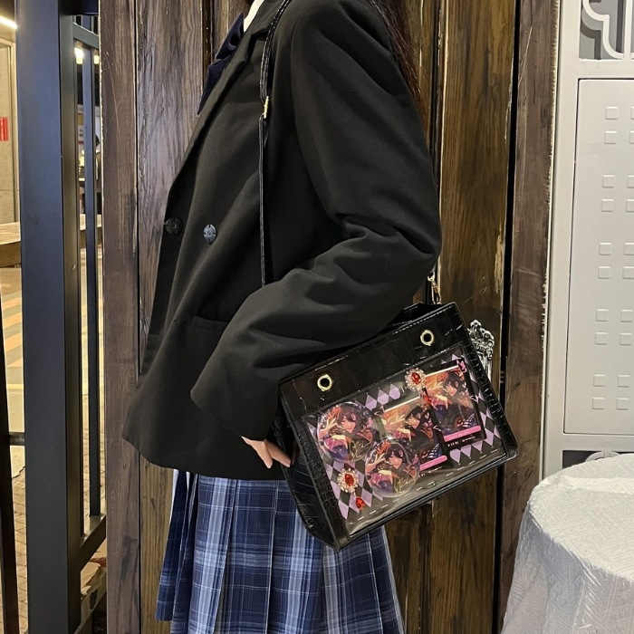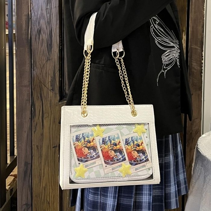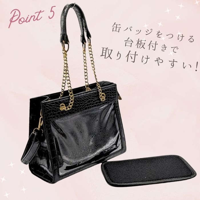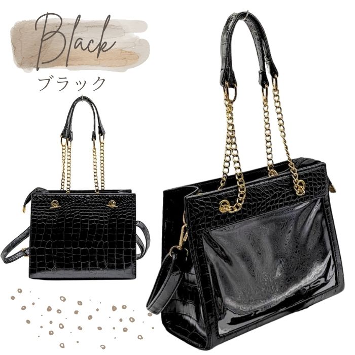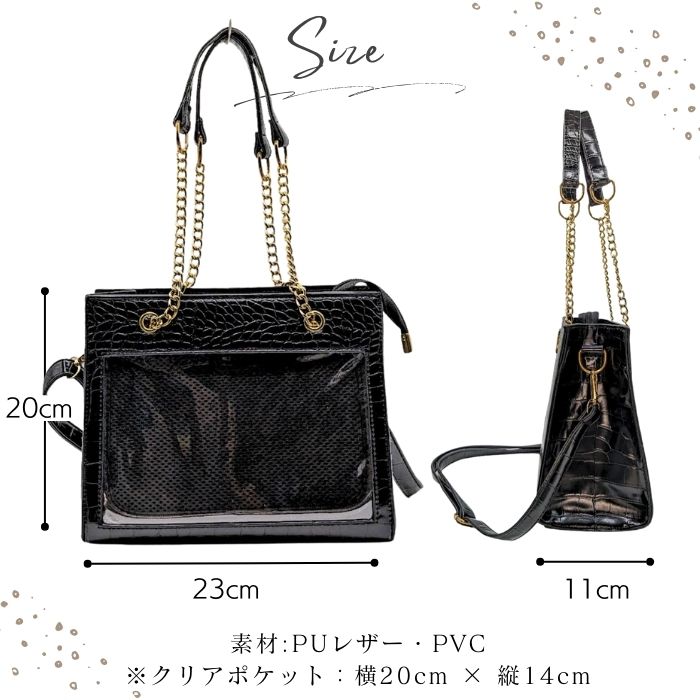 痛バッグ チェーン トート ショルダー 痛バ 小さめ ミニ 2WAY クロコ調 トートバッグ ショルダーバッグ ハンドバッグ ブラック ホワイト 黒 白 かわいい おしゃれ 人気 レディース ガールズ