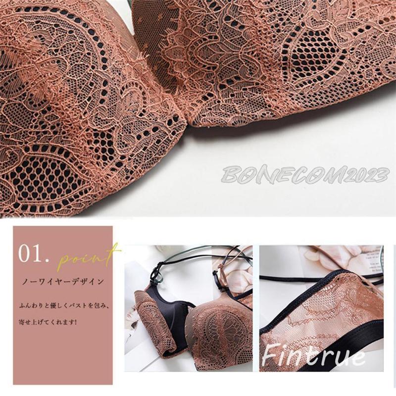 総レース ブラジャー ショーツ レディース 女性 下着 ノーワイヤー ブラセット ソフト ブラ バストアップ 痛くない ブラ&ショーツ上下セット