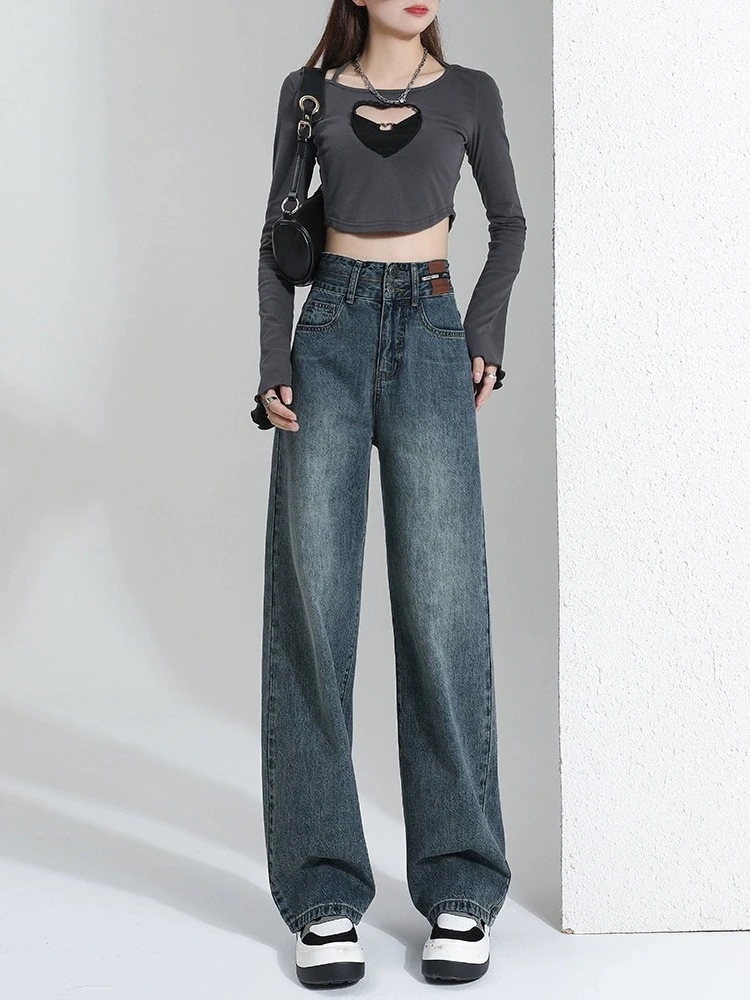 デニムパンツ スラックスパンツ ストレートジーンズ 美脚 着痩せ 春夏 ゆったり ワイドパンツ モップパンツ デニム ジーンズ