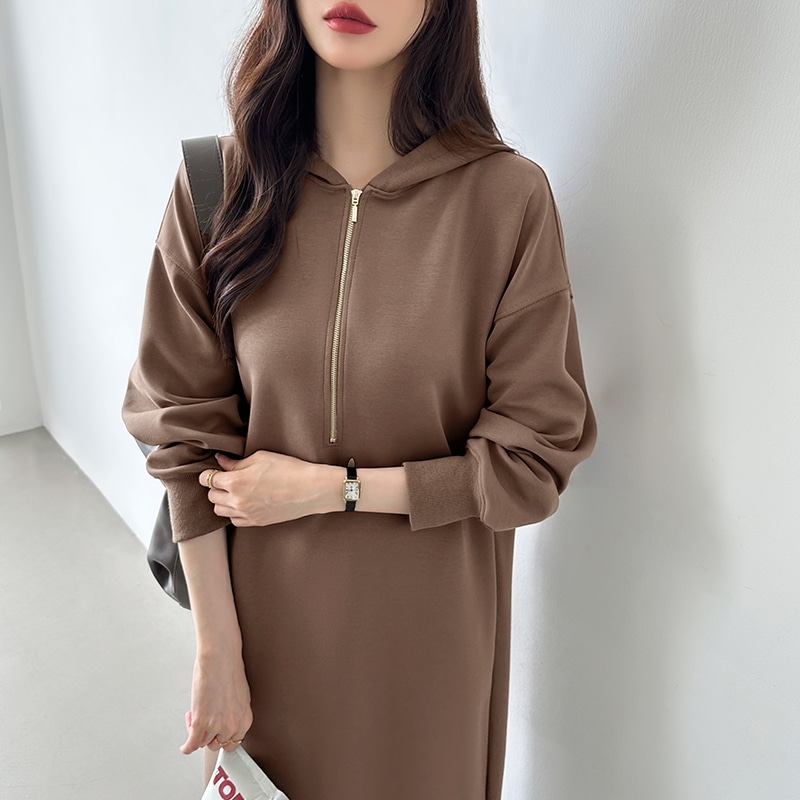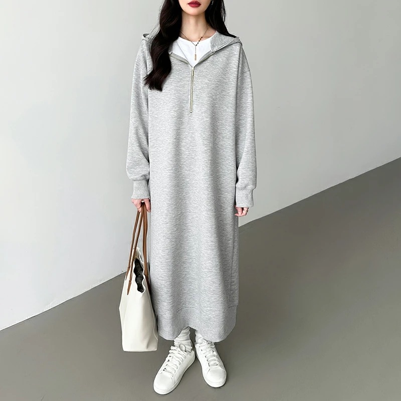 パーカーワンピース ハーフジップ ロングワンピース ワンピース パーカーワンピース 長袖 レディース スリット パーカー ロング 大きいサイズ ポケット付き スウェット