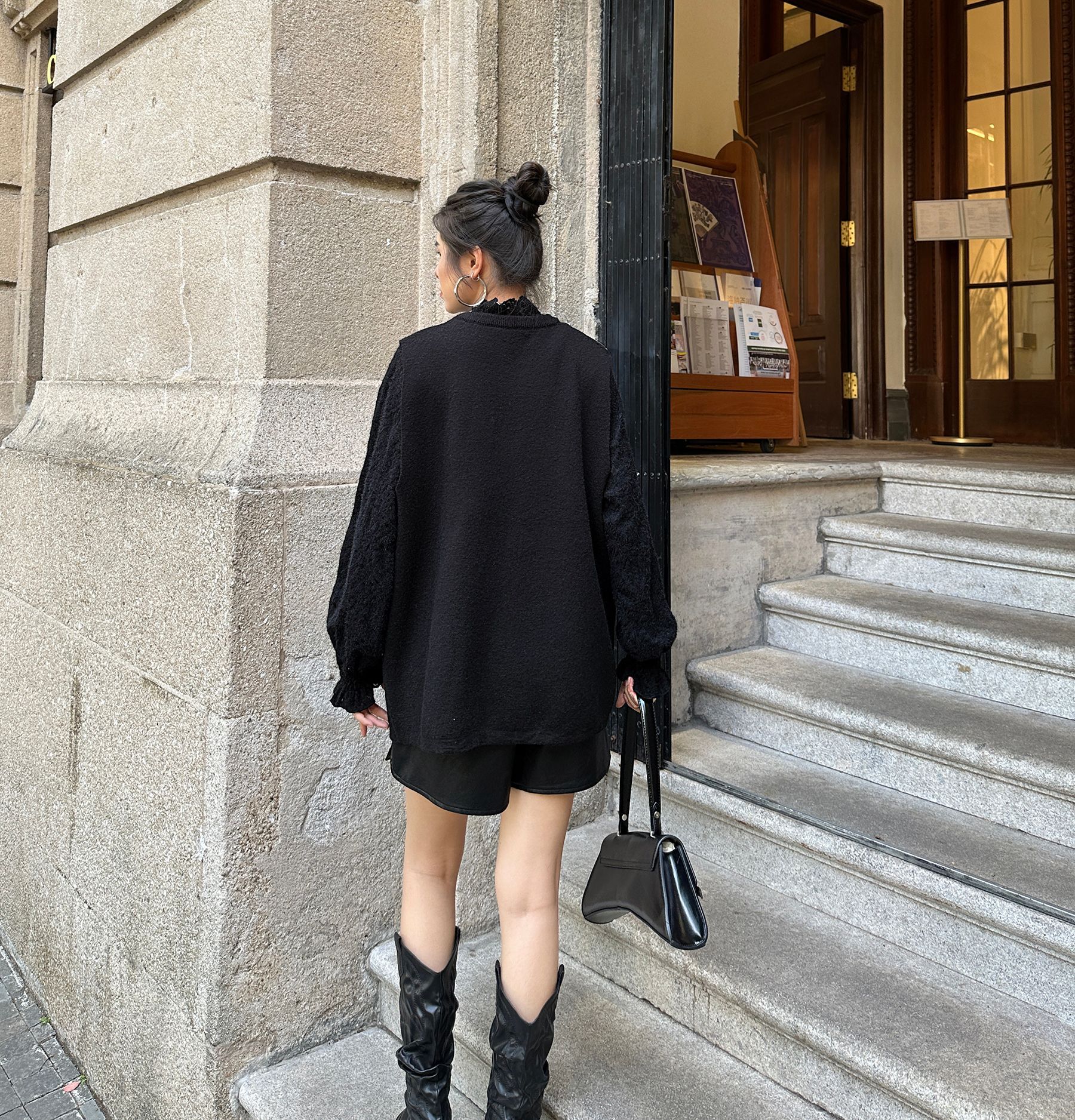 シアースリーブ ドッキングシャツ ボウタイシャツブラウス