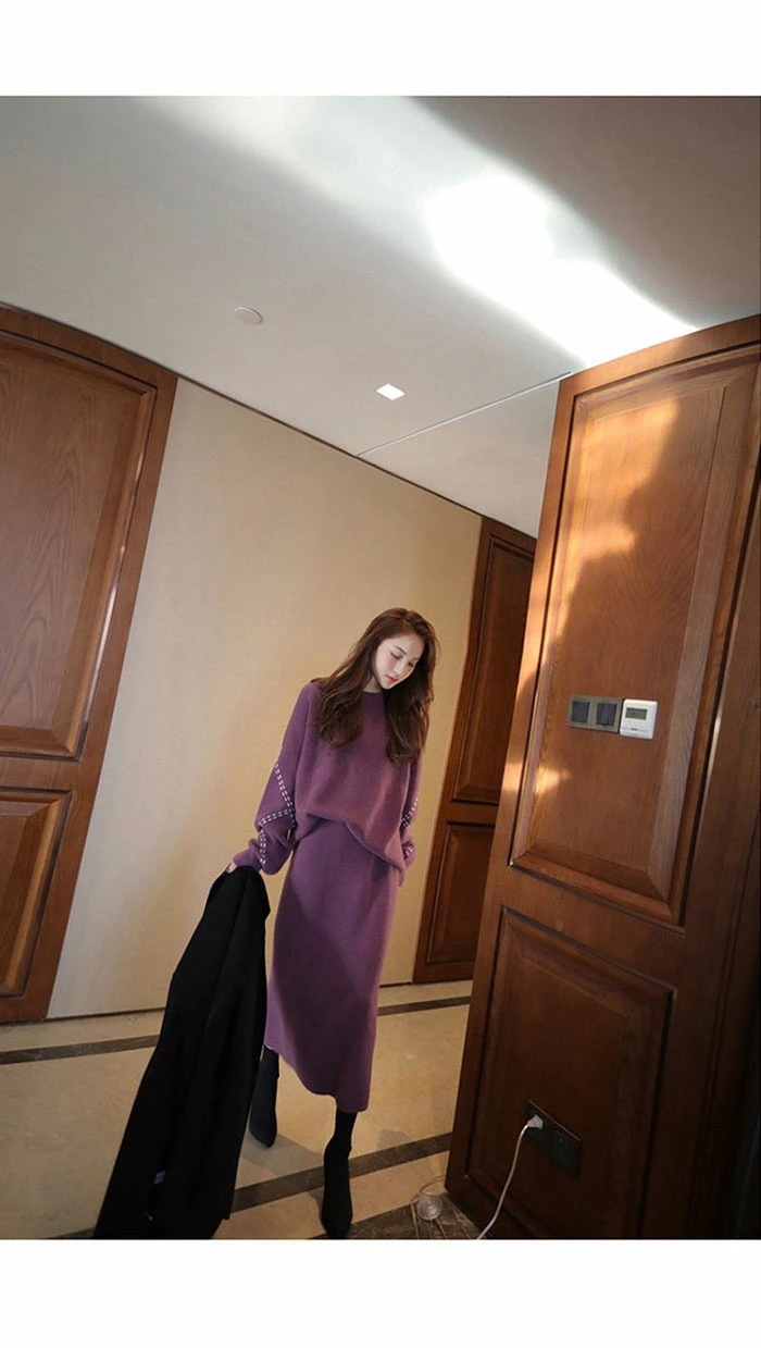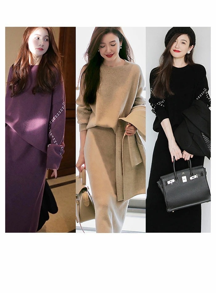 オフェス ニットセットアップ 韓国 スカート セーター きれいめ 長袖 レディース 秋冬ニットスカート セットアップ ロング丈 2点セット オフェス ニットセット スカート ニットスカート セーター 無地 エレ