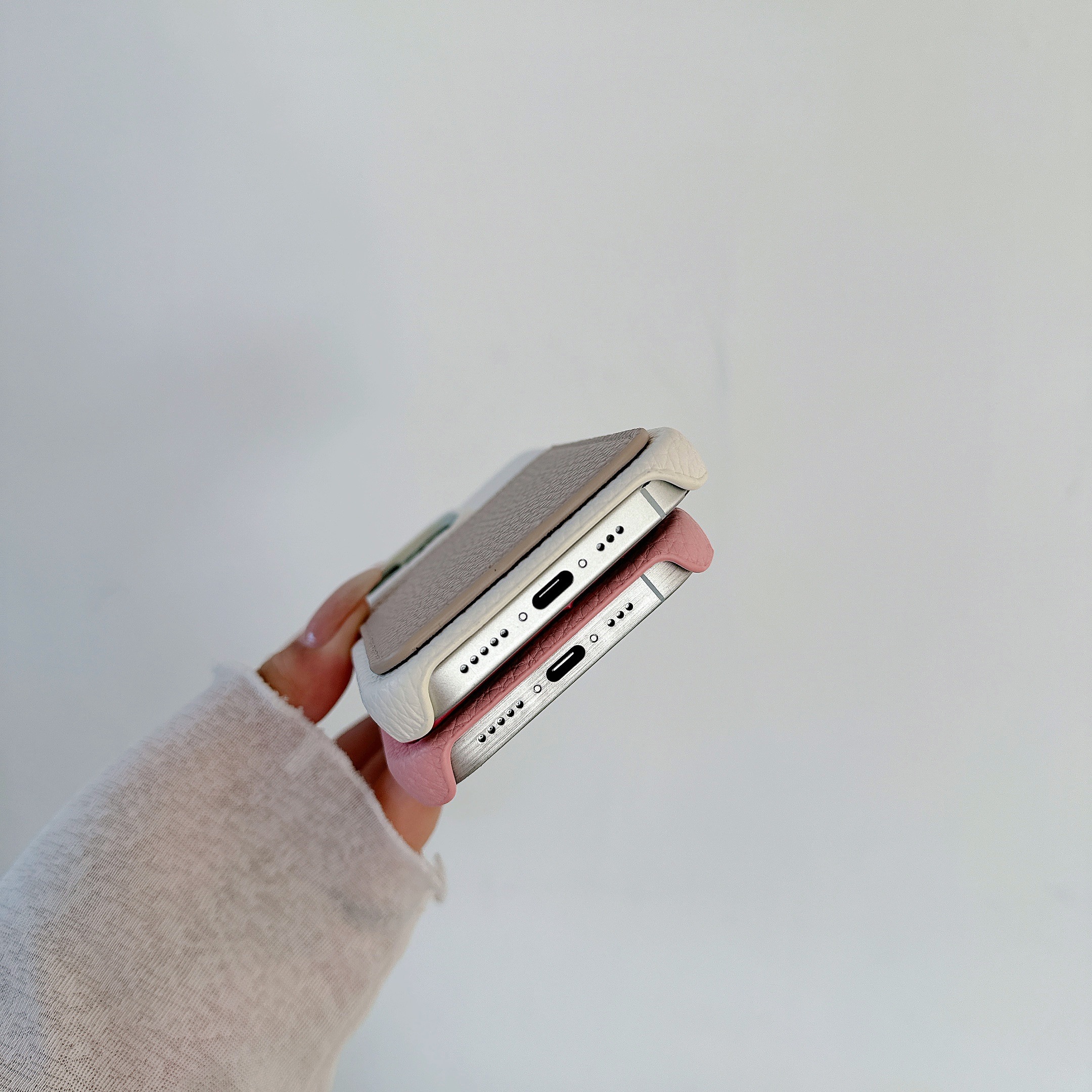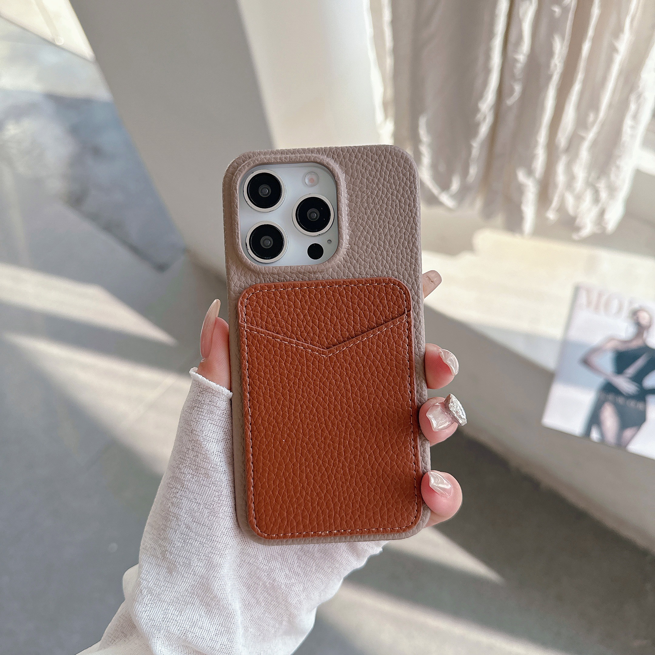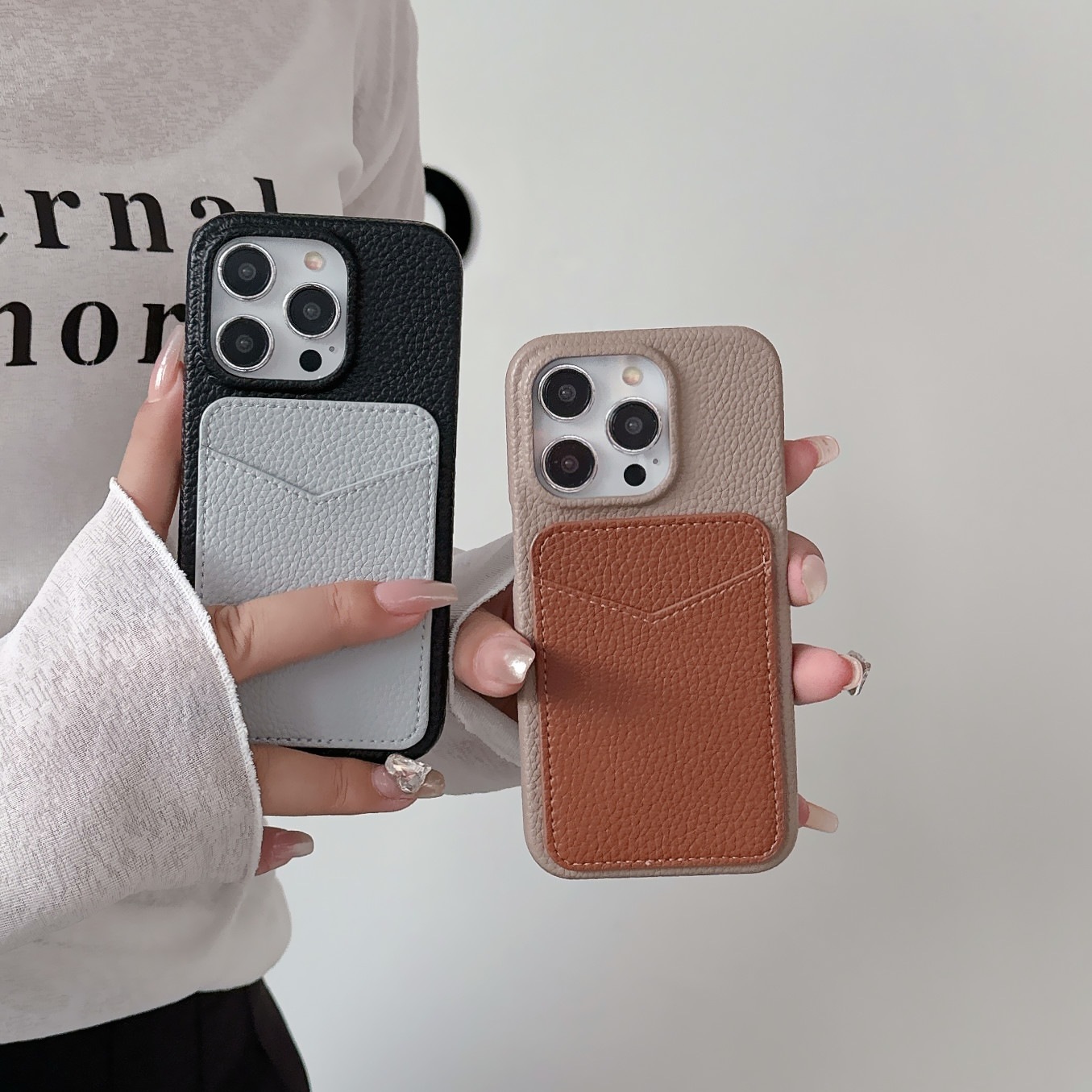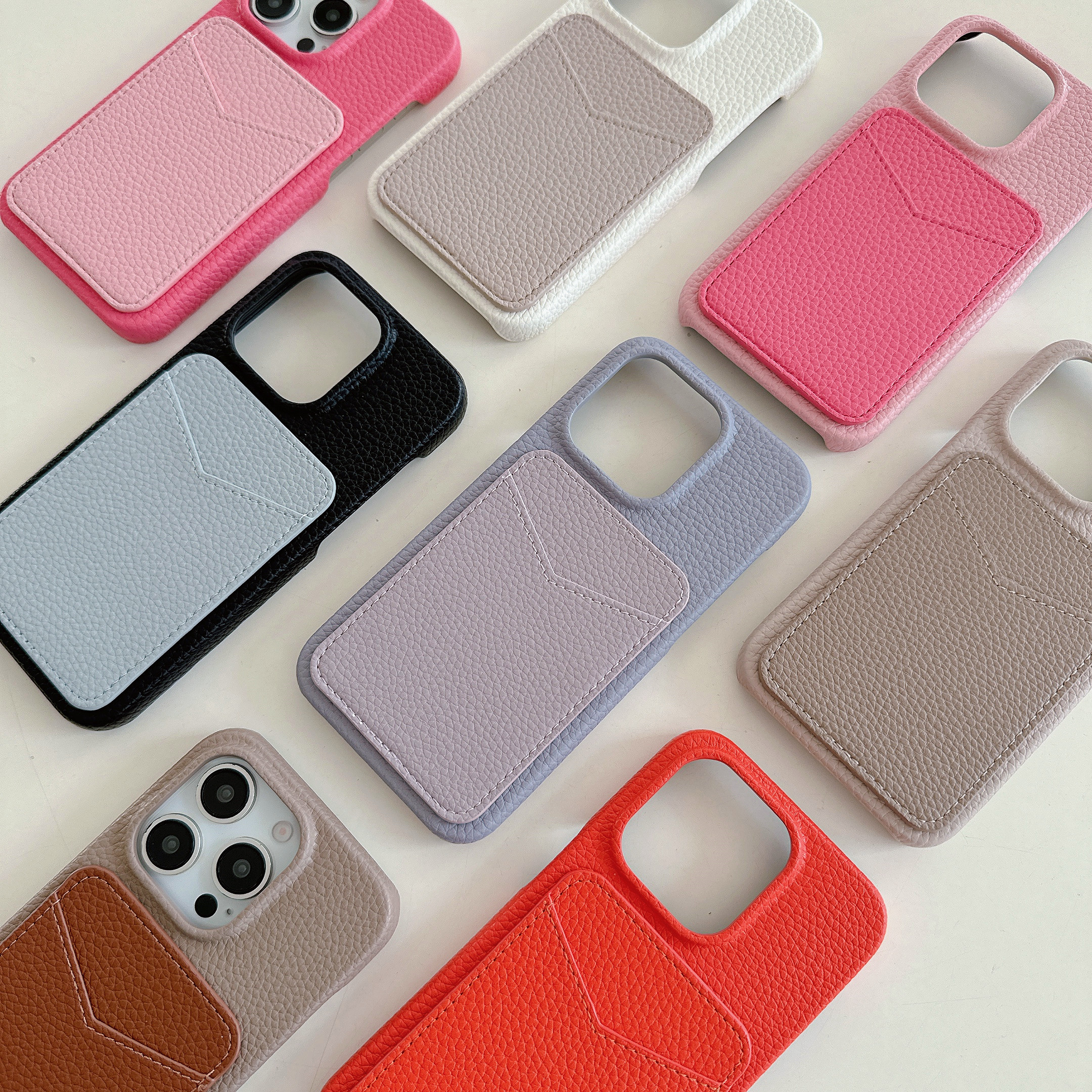 スマホケース スマホカバー iPhoneケース iPhone15 レザーケース 背面ポケット カード収納 本革 皮 カメラ保護 落下防止 バイカラー 韓国 大人かわいい ギフト