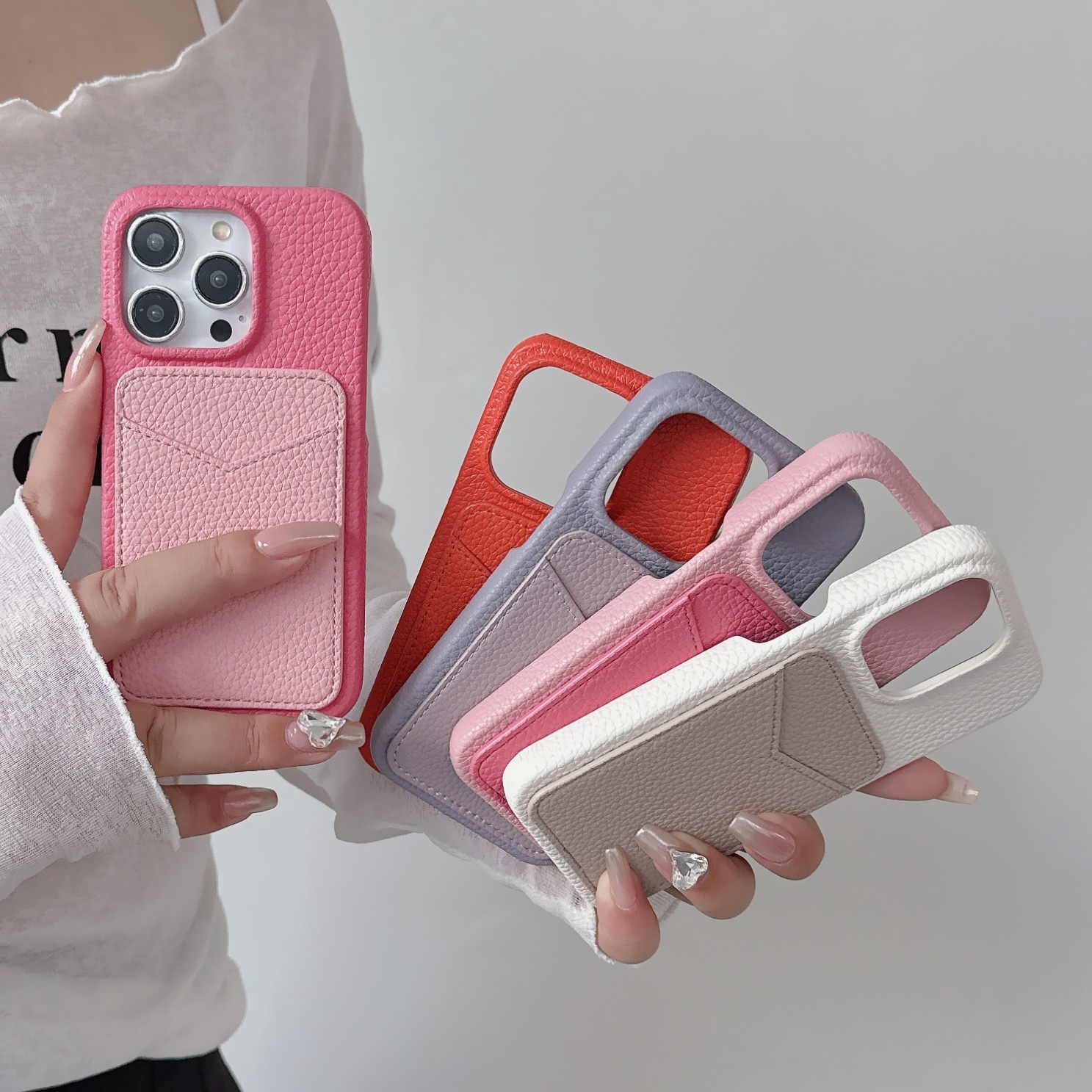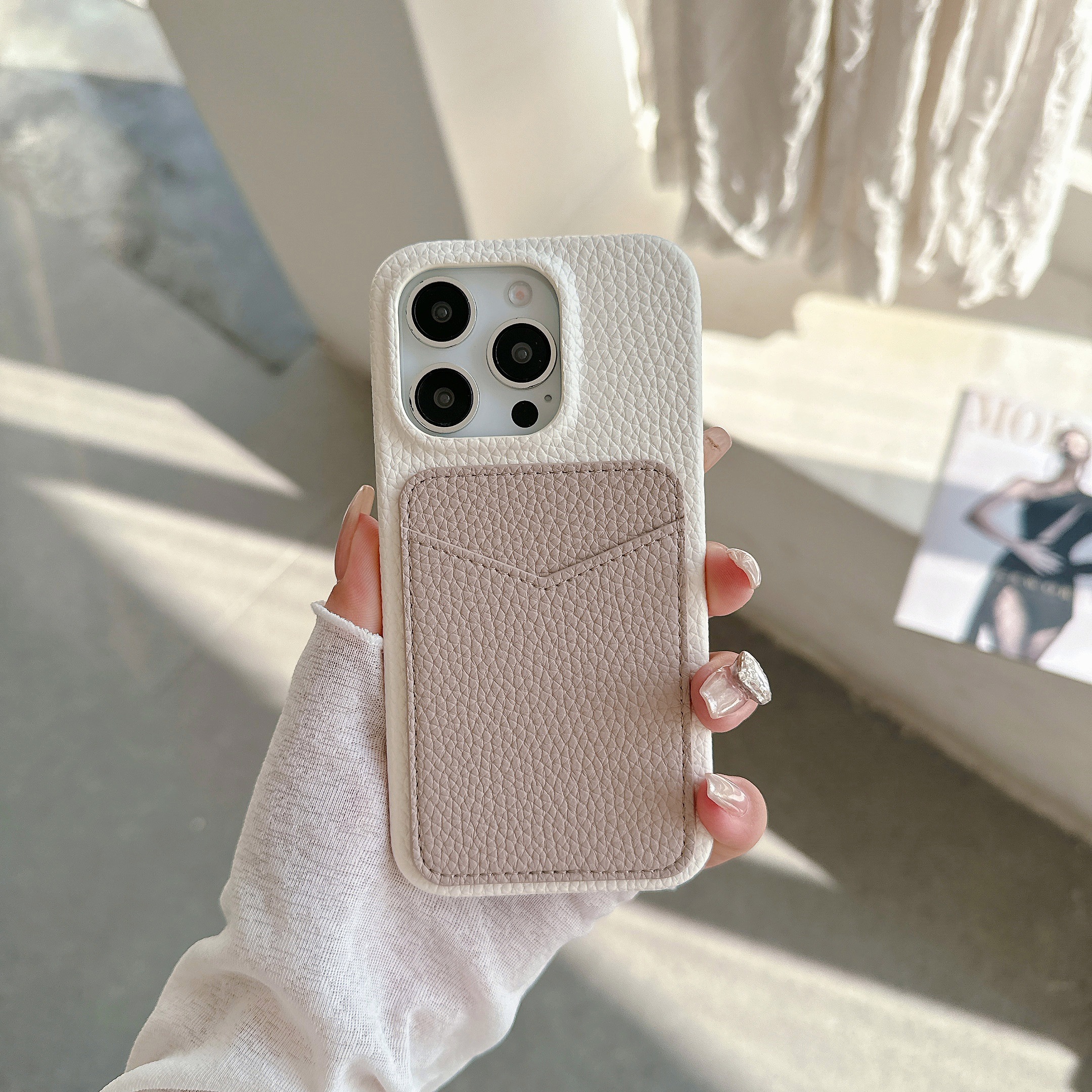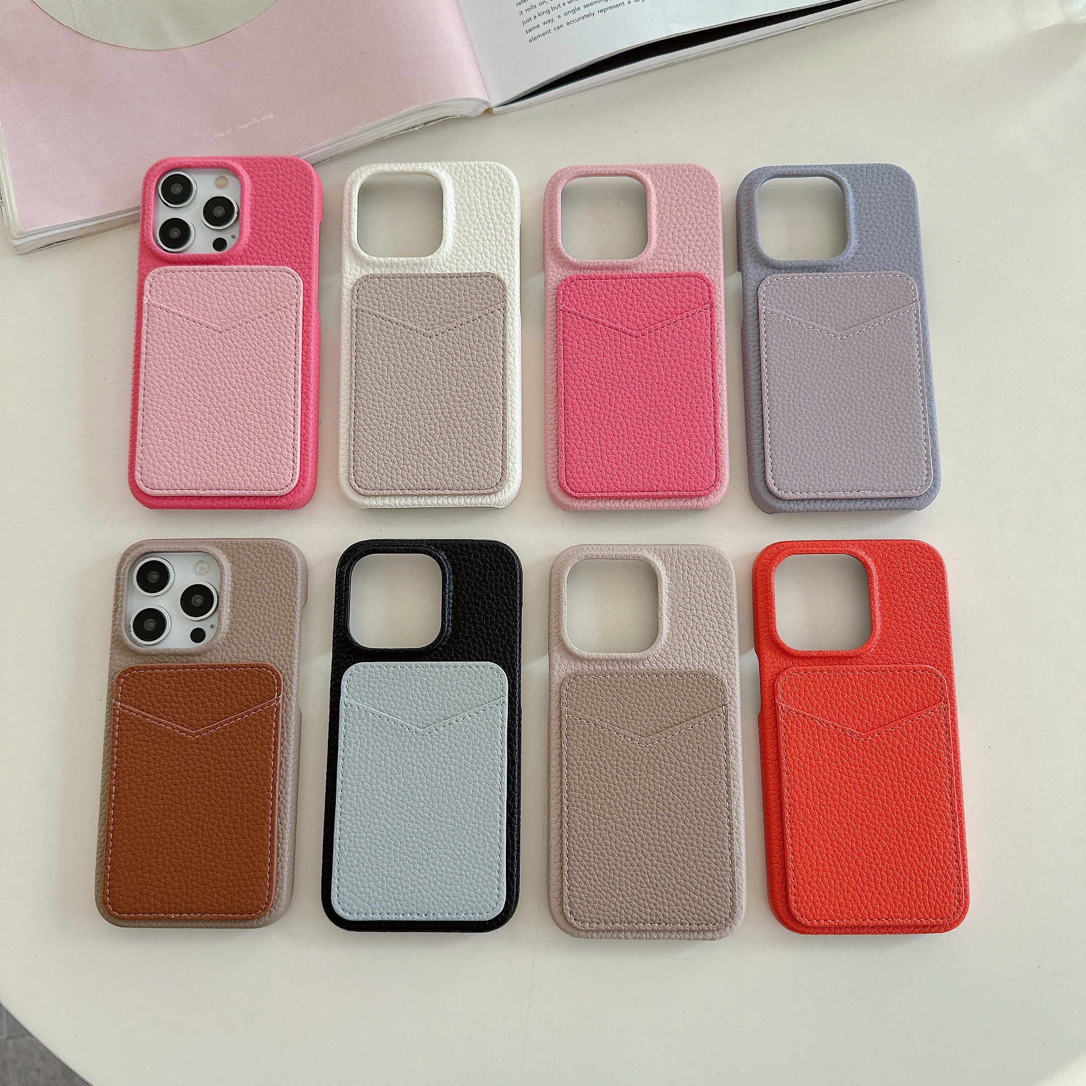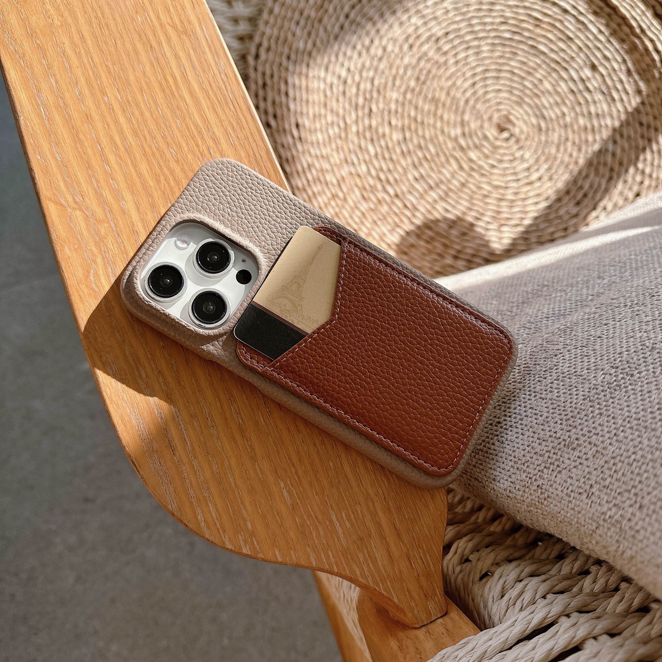 スマホケース スマホカバー iPhoneケース iPhone15 レザーケース 背面ポケット カード収納 本革 皮 カメラ保護 落下防止 バイカラー 韓国 大人かわいい ギフト