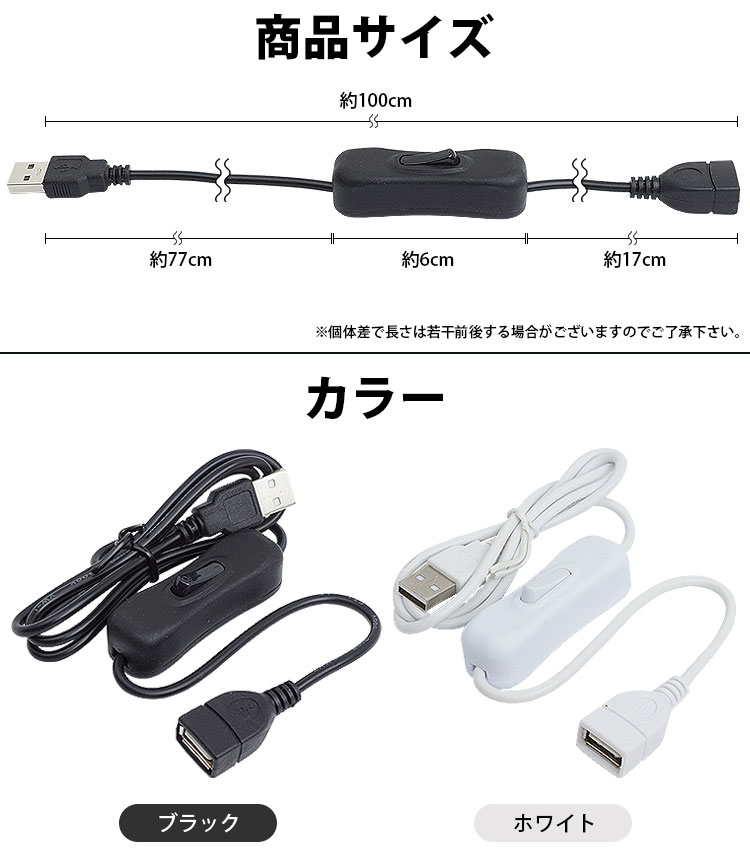 スイッチ付き 延長 USBケーブル 1m USB Type-A オス メス ON OFF スイッチ USB 電源スイッチ 延長ケーブル 簡単接続 PR-USBSW42