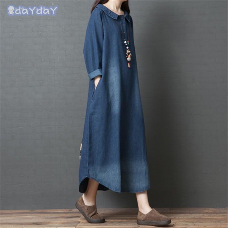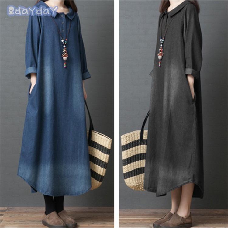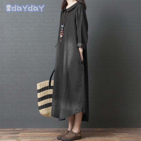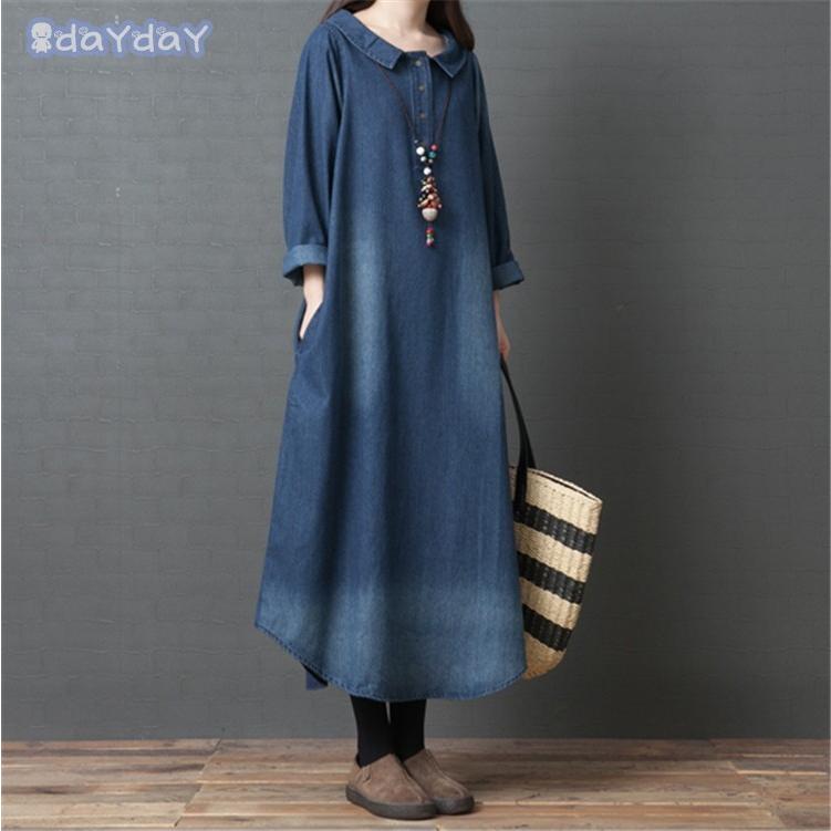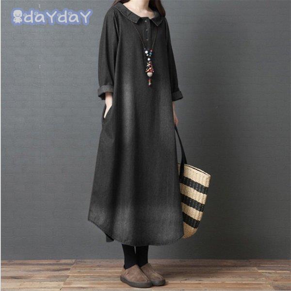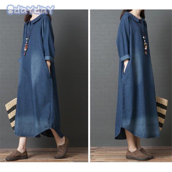 マキシ デニム レディース デニム ロング 長袖 ゆったり 体型カバー ロング 森ガール 春 30代 40代 着痩せ ロングスカート