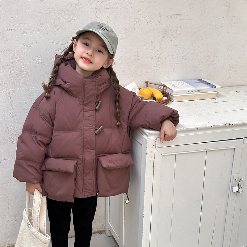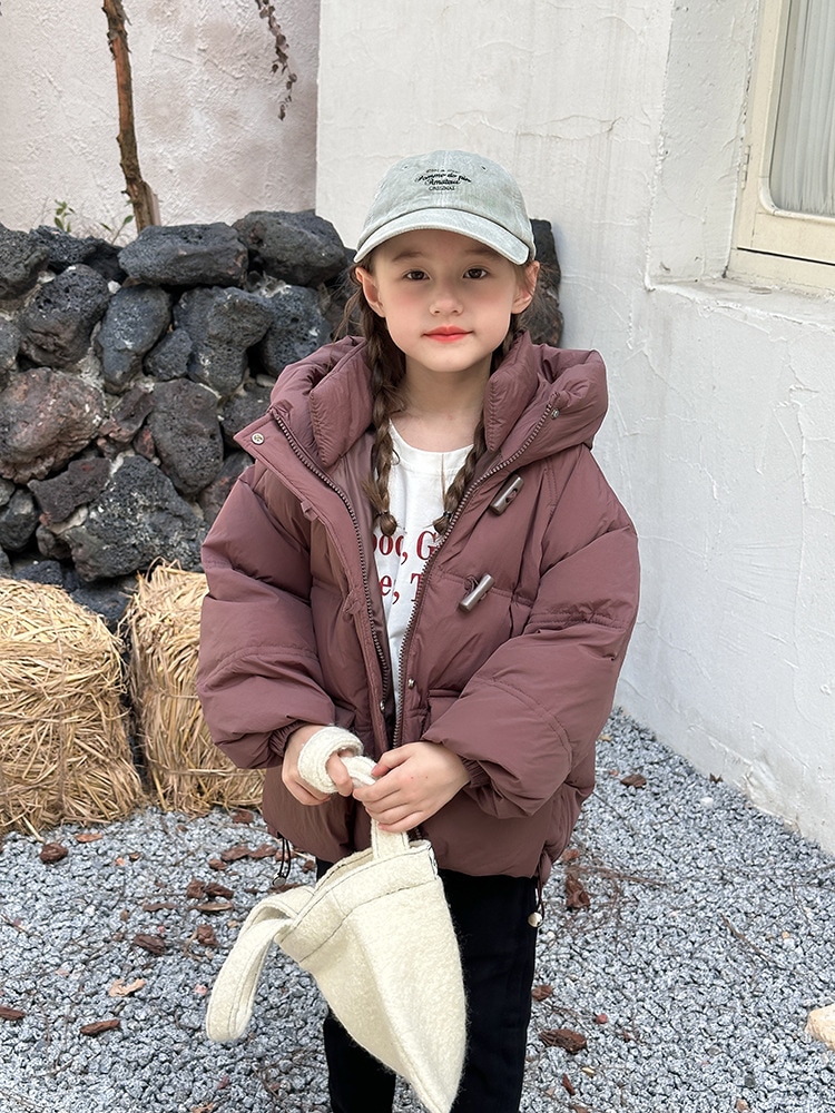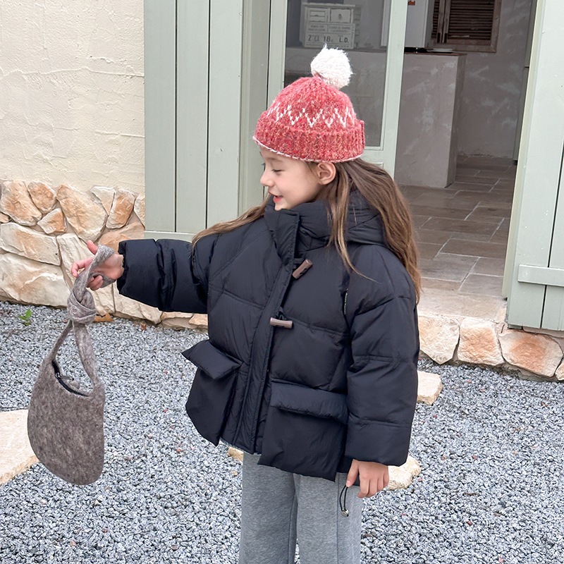 子供の中で大童の韓国版牛角ボタンダウンジャケットを厚くした秋冬の新しい男女の子供用パンコート アウター