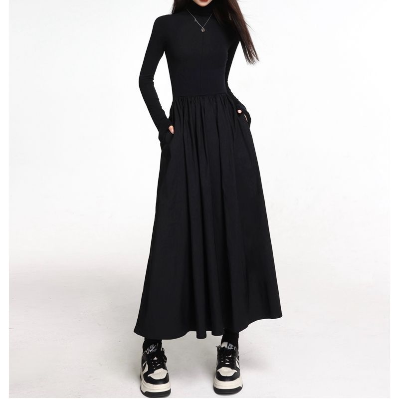 タートルネックニットワンピース 無地 マキシ丈 長袖 ニットワンピ シンプル ニットワンピース ニットワンピ