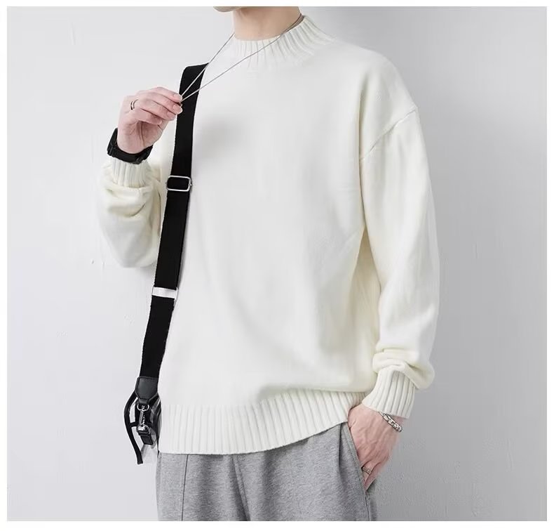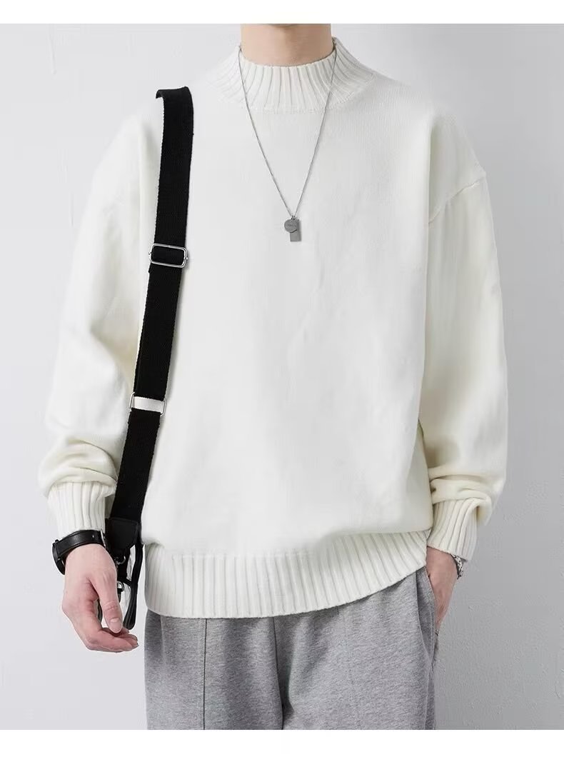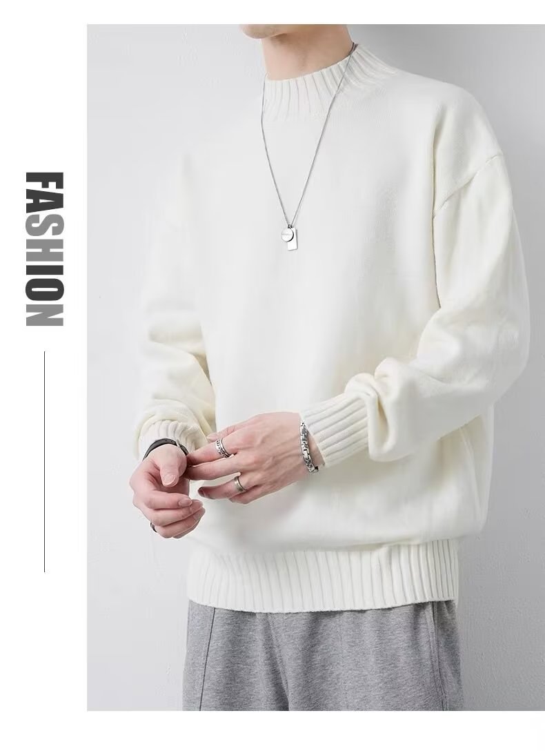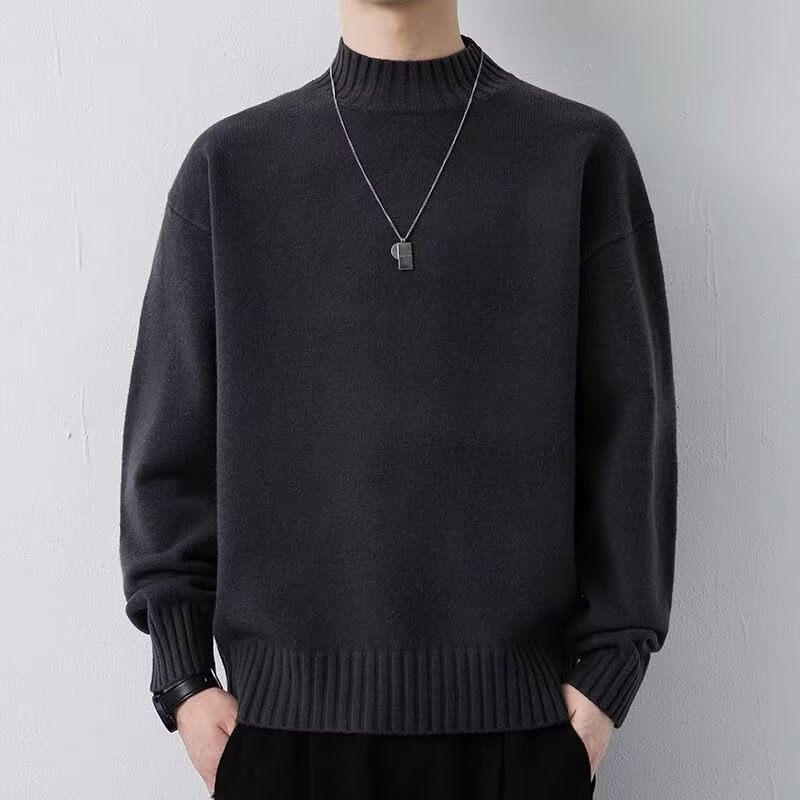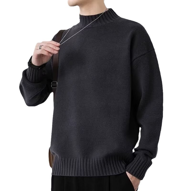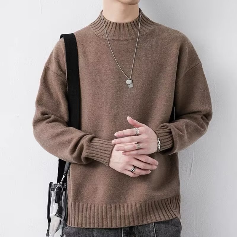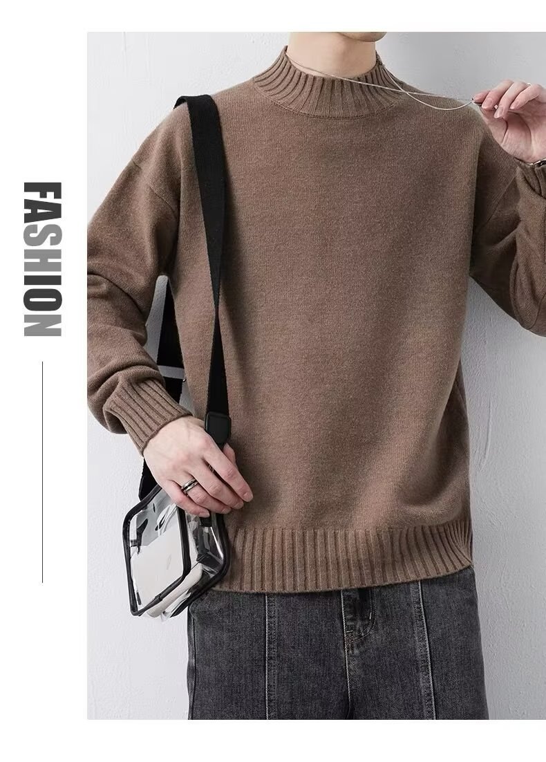 ニットセミタートルネックジャンパーメンズ秋冬新作ルーズニットセーター中わた増毛襟暖かい学生底上げシャツ ニット セーター