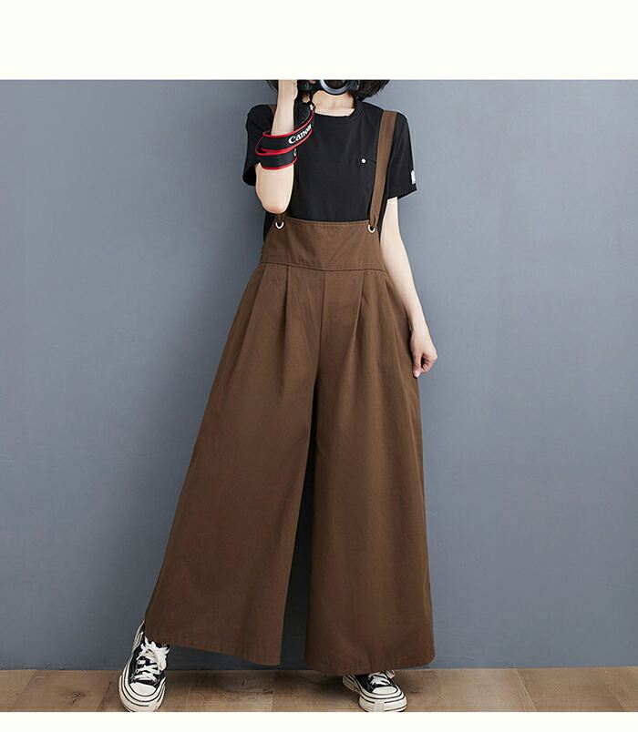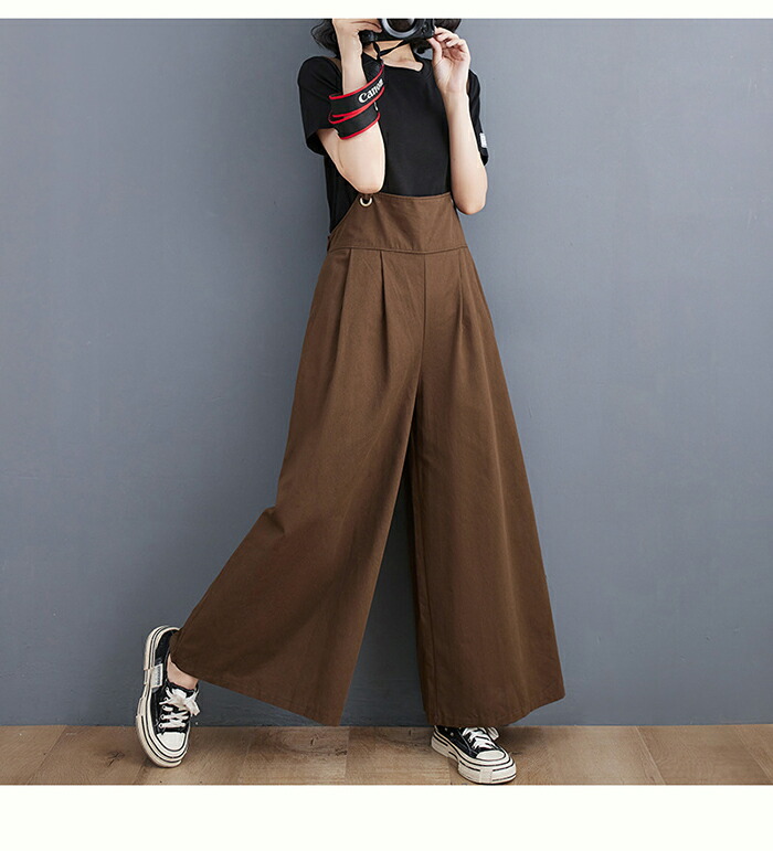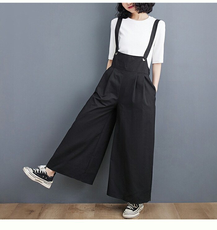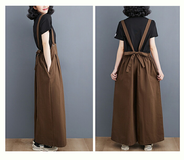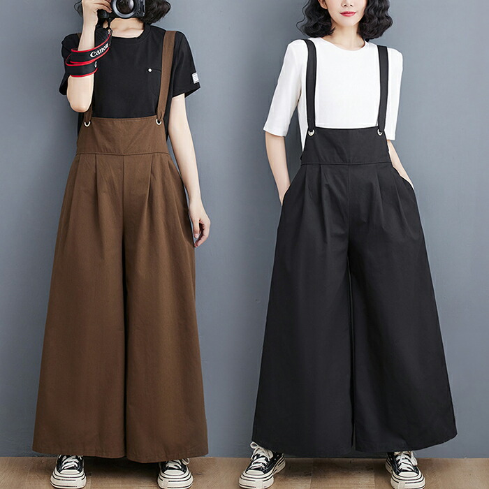 オールインワン サロペット レディース ワイド オーバーオール ワイドパンツ サスペンダー ロング丈 パンツ ノースリーブ ボトムス おしゃれ 大人可愛い 無地 細見え きれいめ サイドポケット 重ね