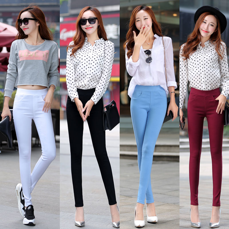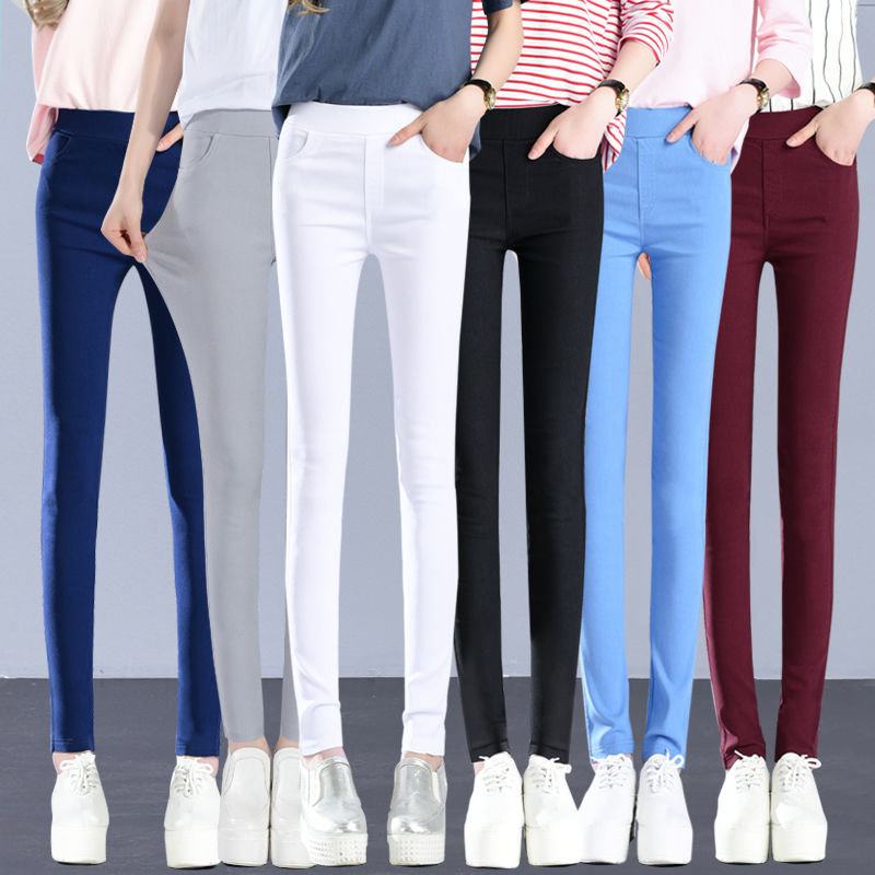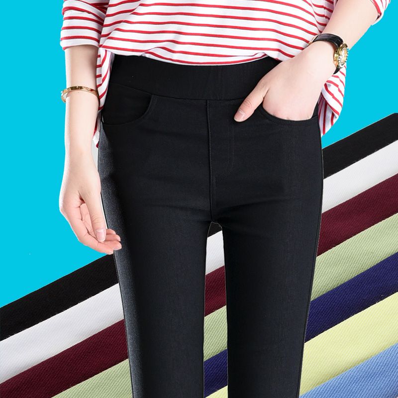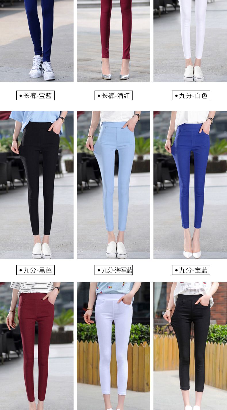 脚長効果 スキニーパンツパンツ春と秋の薄いカラータイツの外着やせ9分ストレッチタイトハイウエストペンシルパンツレディース 韓国ファッション