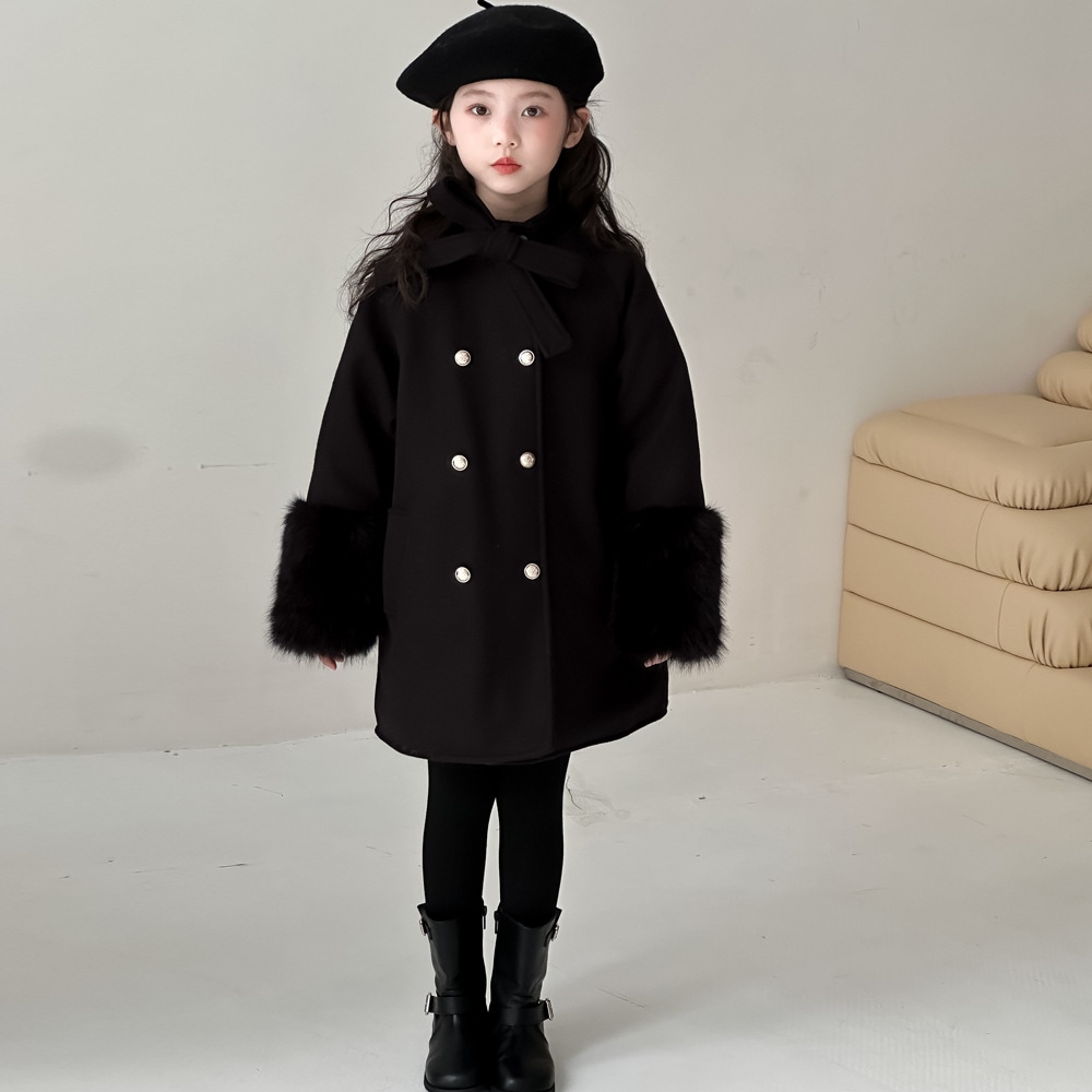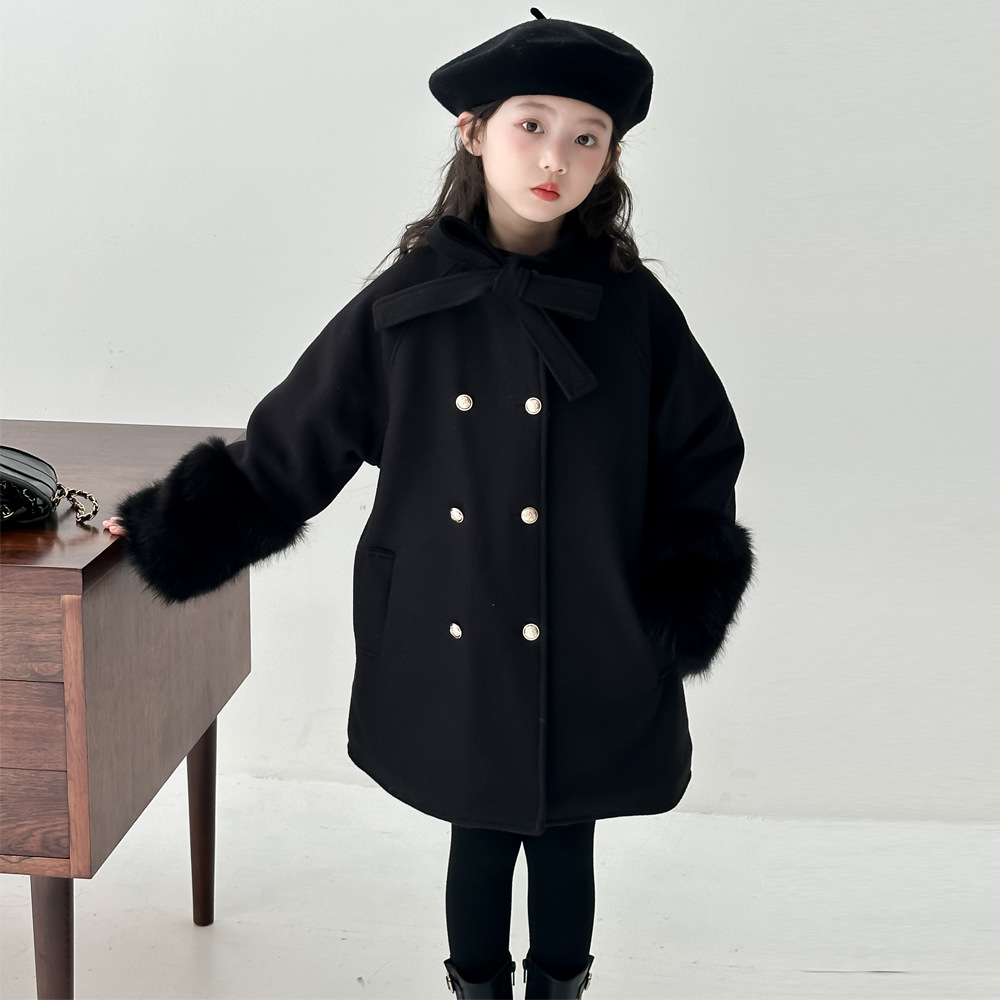 子拱服 アウター カーディガン子供服2025冬の新しい女の子豊かな花ゴールドバックルボウ千ゴールドツイードコート女性宝気質モデルコート アウター
