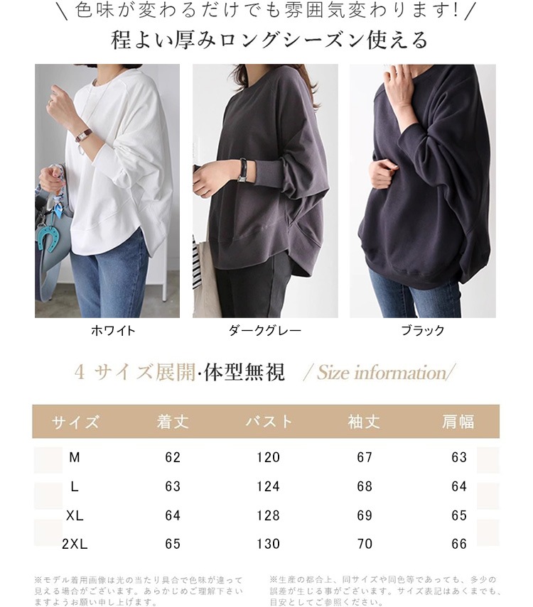 トレーナー 長袖 スウェット ドルマン袖のトレーナー プルオーバー トップス カジュアル ゆったり 可愛い 通勤 お出かけ 春夏秋 レディース