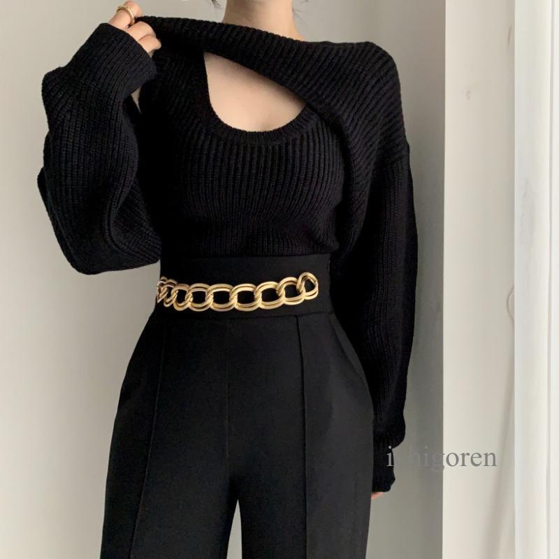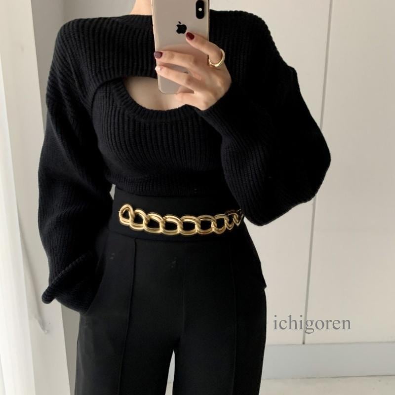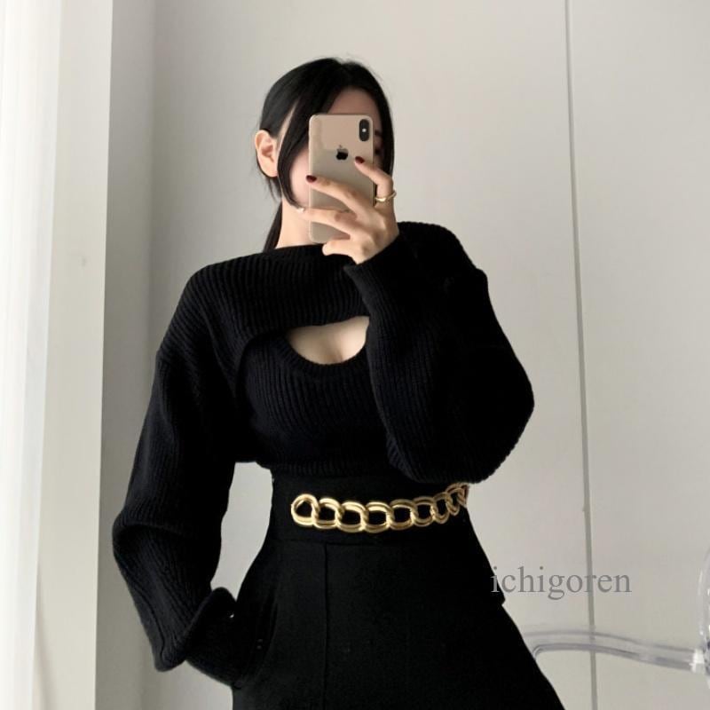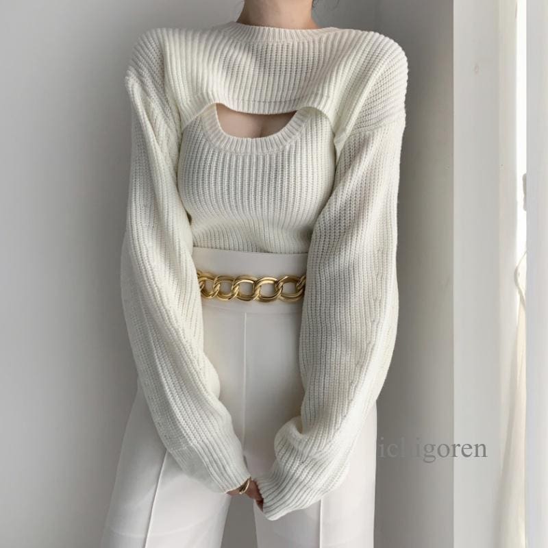 短丈ニット タンク アンサンブル レディース ショート丈 セーター 白 黒 ニット トップス 秋 冬 おしゃれ 韓国 きれいめ コンサバ ニット