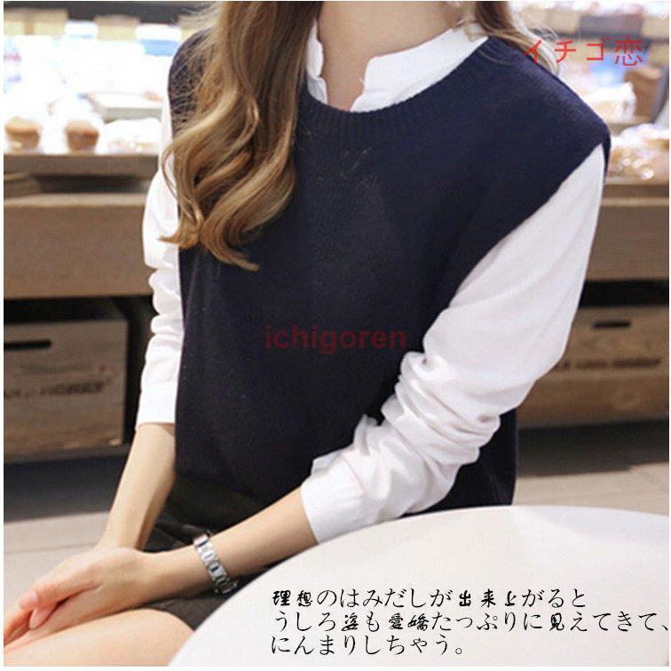 春の新作 うしろでシャツとの重ね着をあそぶニットベスト レディース ニット ウェア ニットソー セーター ブラウス トップス 厚手 柔らかい ウール混 重ね着