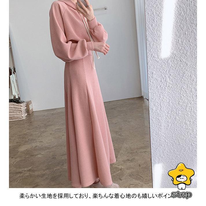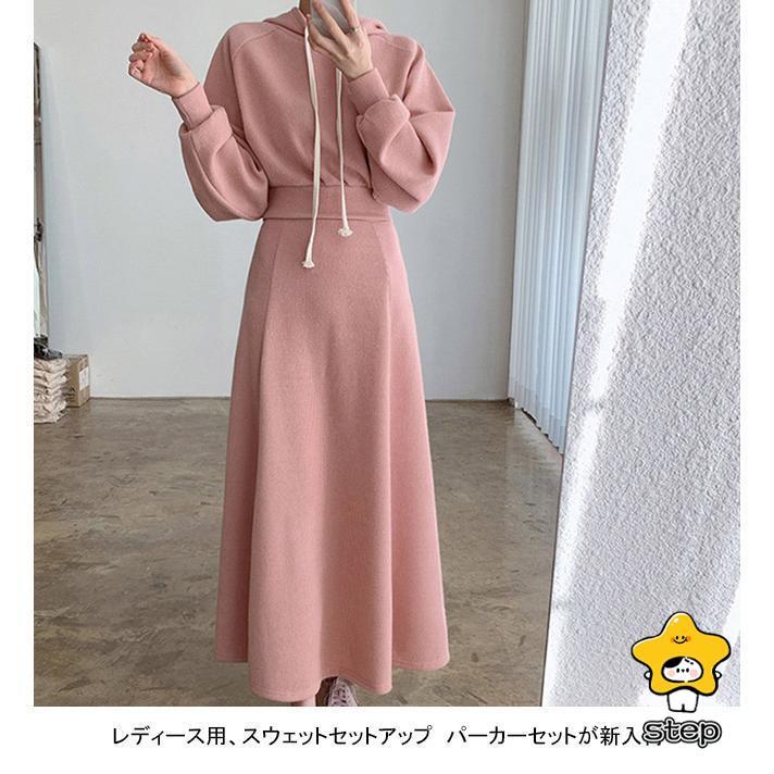 パーカーセット レディース 上下セット ロングスカート フード付き ウエストタック ポケット 柔らかい ゆったり シンプル 春秋 パーカー