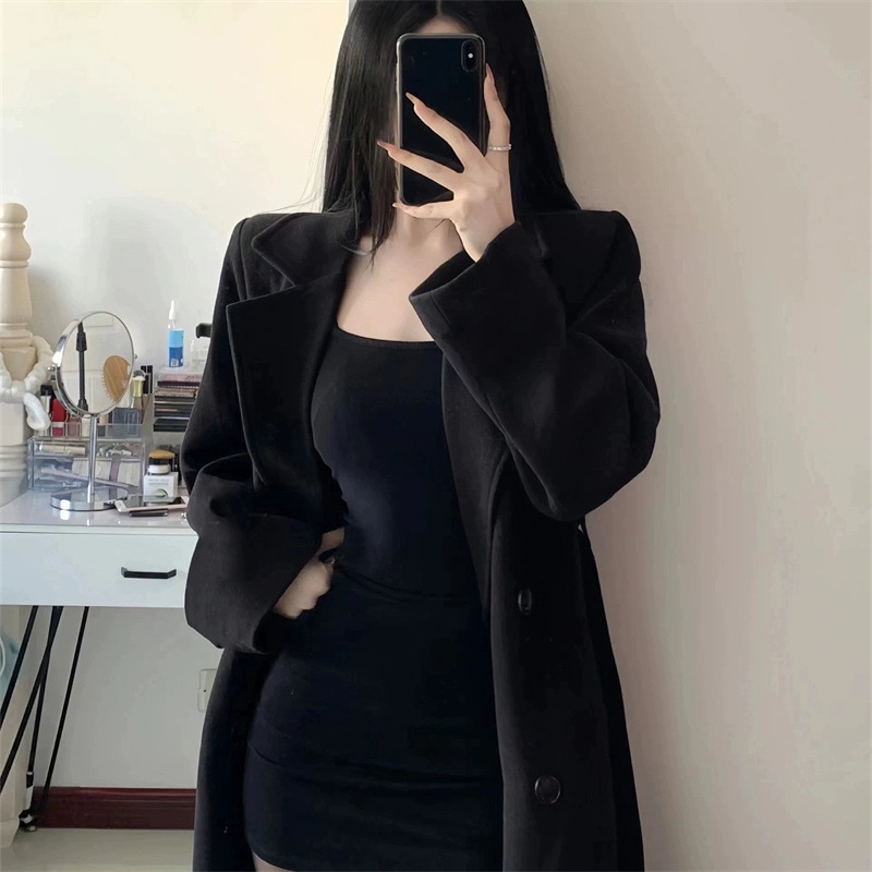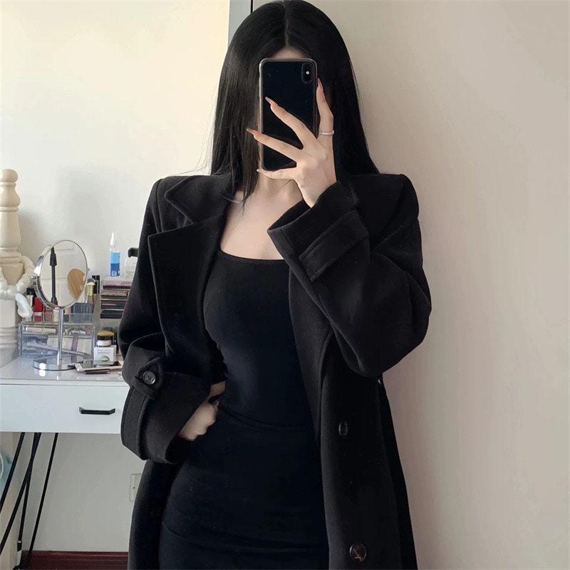 冬アウター 秋冬新作黒ツイードジャケット ロングコート とろみツイードコート レディース その他 アウター