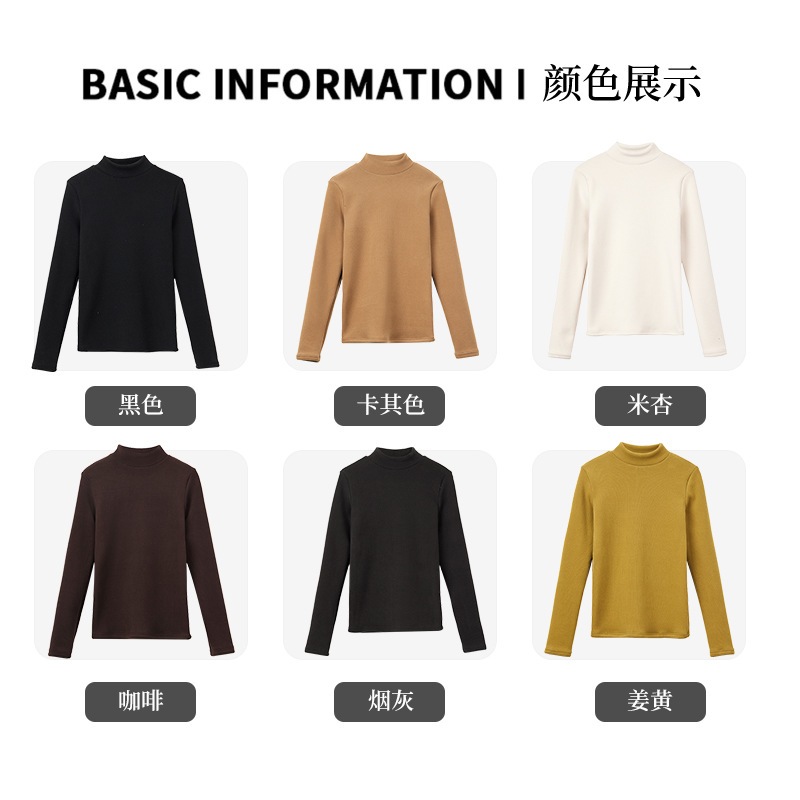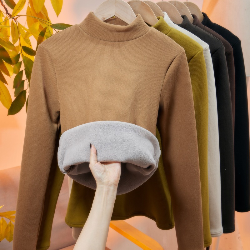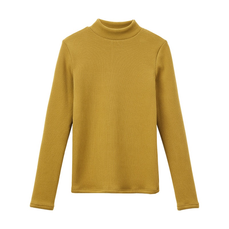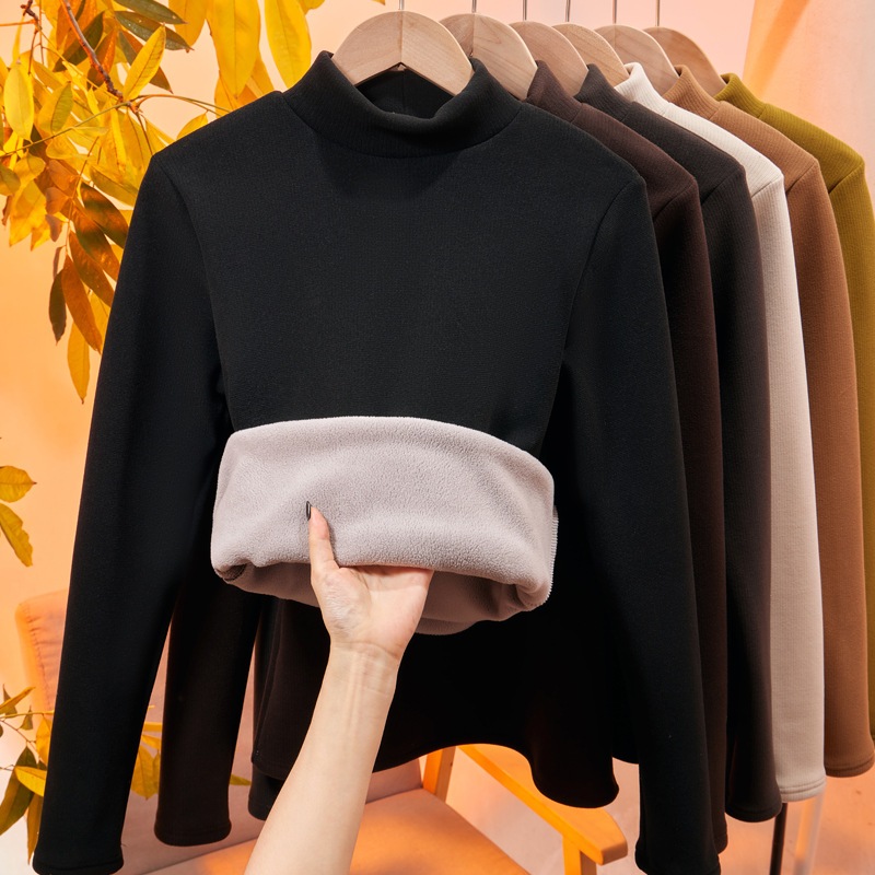 裏起毛ファッション 中わた入り冬暖かいスレッドミッドネックボトムシャツ女性長袖トップス Tシャツ カットソー