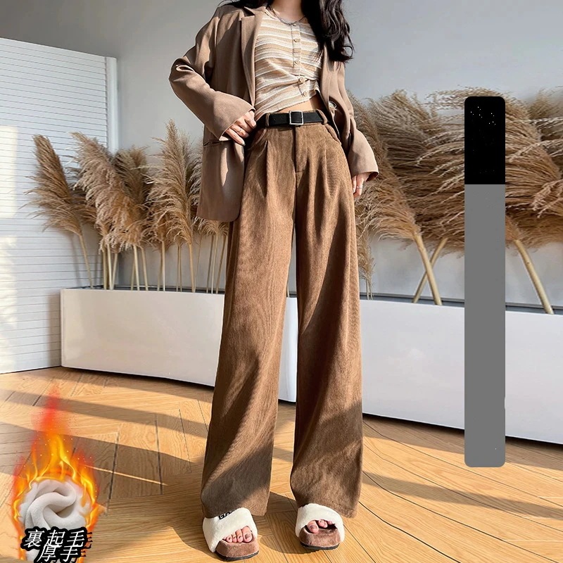 2024新作 おしゃれハイウエスト極暖 裏起毛 ワイドパンツモップパンツ ロングズボン 大きいサイズ スラックスパンツ コーデュロイパンツ 裏起毛ファッション