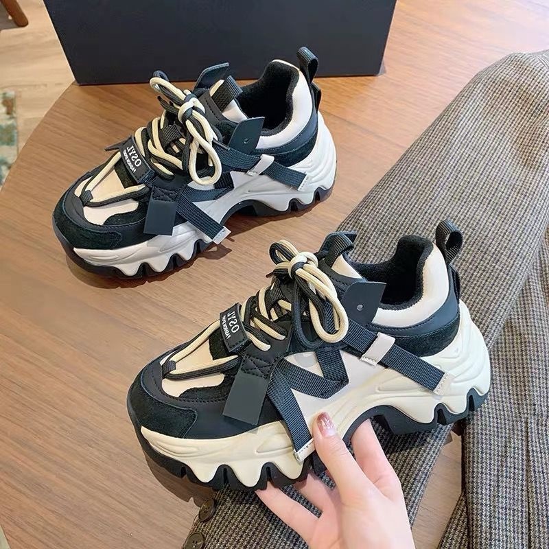 2025秋冬新品 超人気 厚底 スニーカー ヒール5CM 秋冬 韓国靴 通学通勤 今流行の靴 レディース 美脚 運動靴 白 スポーツシューズ快適ダッドスニーカー