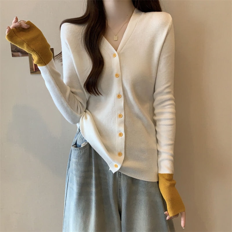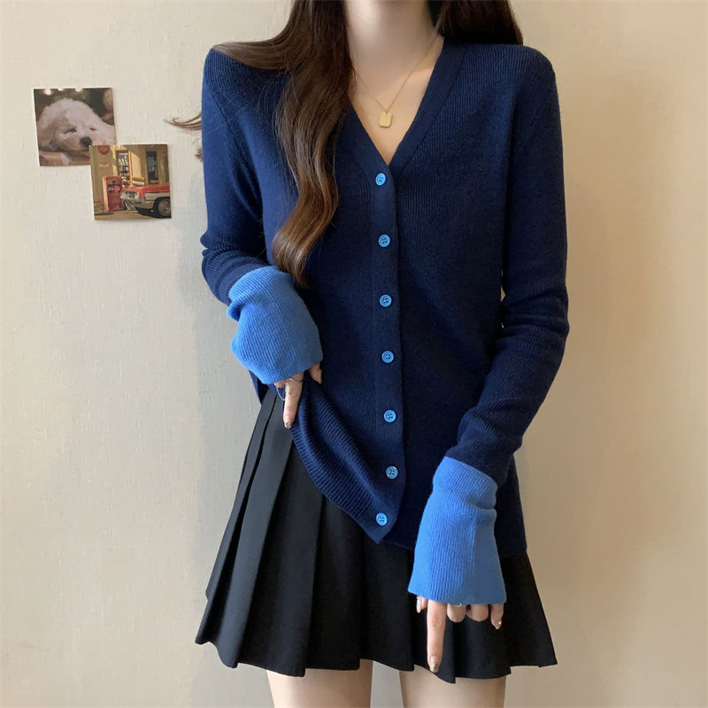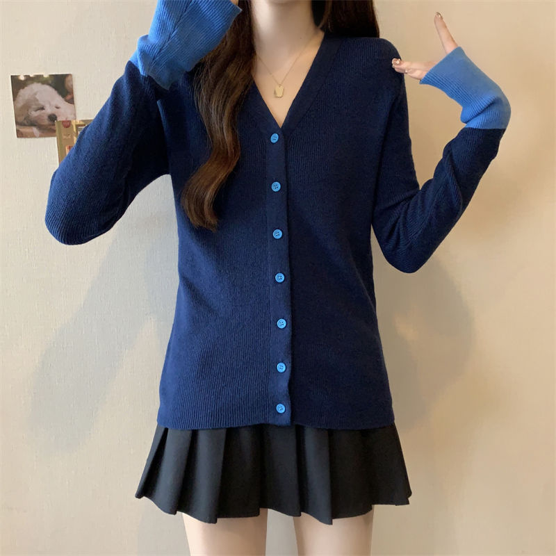 ニット Vネックカーディガン 配色ニット カーディガン レディース バイカラー ニット vネック トップス 長袖 ニットカーディガン 配色 vネックニット