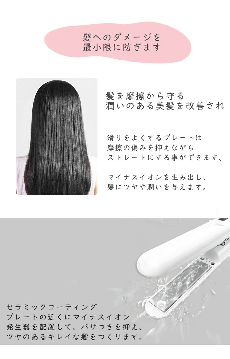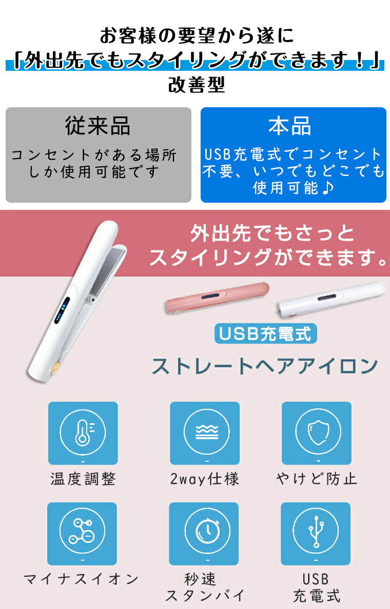 ヘアアイロンカールアイロンミニUSB充電式ストレートアイロン2wayやけど防止軽量カール軽いストレート旅行携帯用収納ポーチ持ち運びマイナスイオンギフト誤動作防止