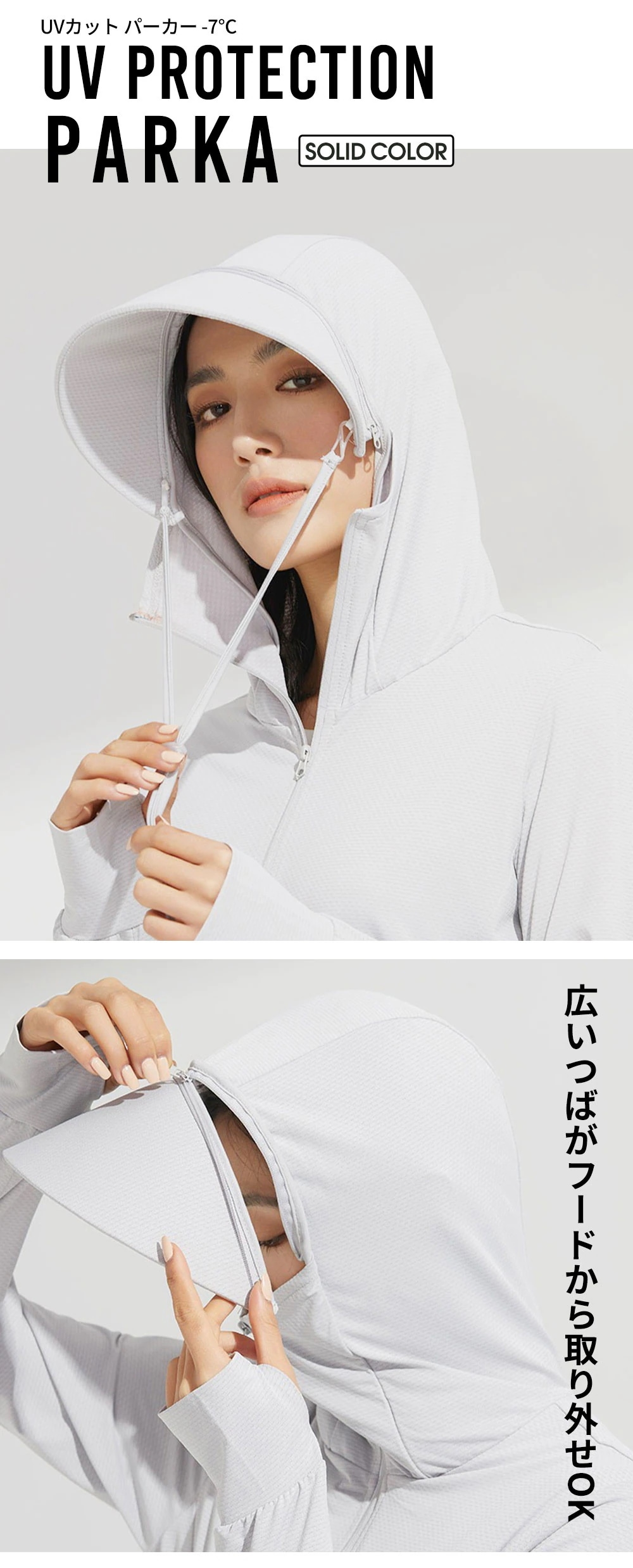 追加料金なしUV パーカー 着るだけ-7℃ 冷感 レディース 長袖 ラッシュガード UVカット アウター メッシュ 素材 通気口 指穴 つば