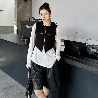 2025春 ショートベスト ジップ おしゃれ レディース トップス 関連商品購入可能 メガ割 タンクトップ