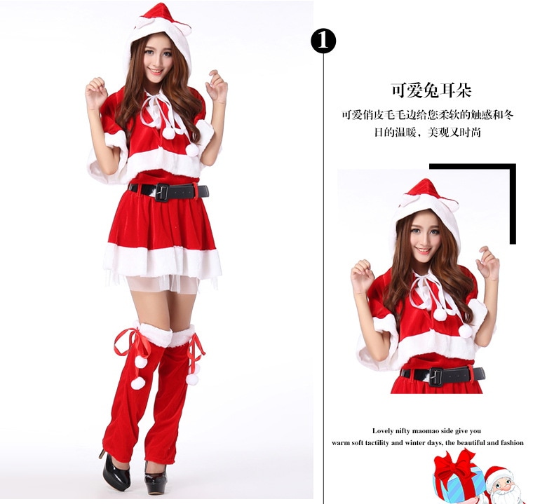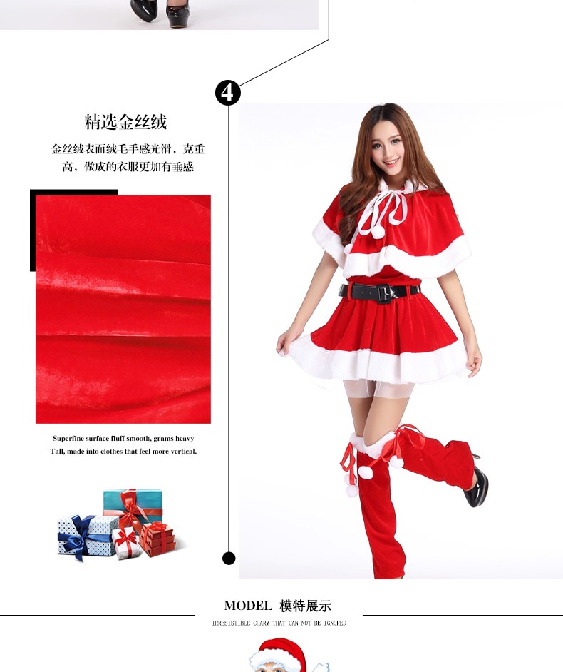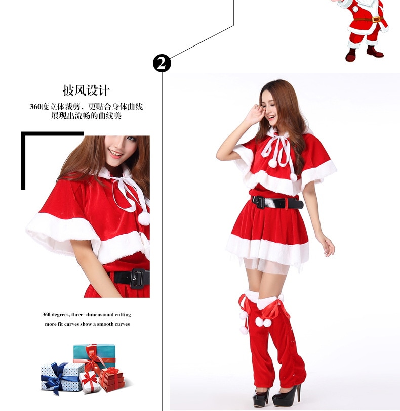 2色 韓国版 ハロウィン クリスマス 舞踏会 パーティー セクシー 舞台ショー服 欧米女の人 サンタクロース コスプレ服装 趣のある制服 5つのセット 小さなマント QRP02