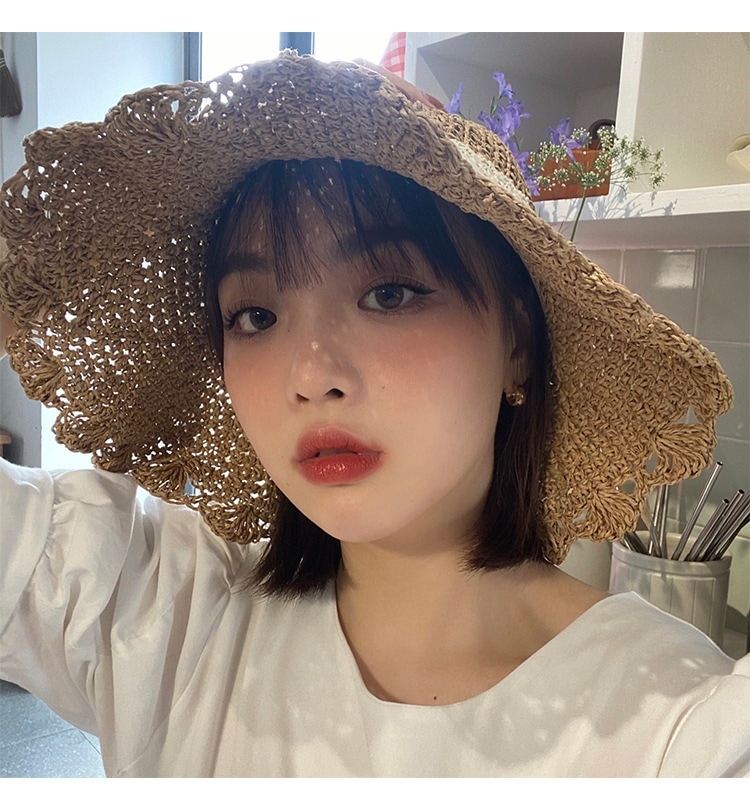 紫外線対策日焼け止め UVカット帽子バケットハット日よけ韓流シック スウィートで可愛い ストローハット さわやかで可愛い 麦わら帽子 ビーチ用 ツバ広 日焼け止めハット 韓国ファッション