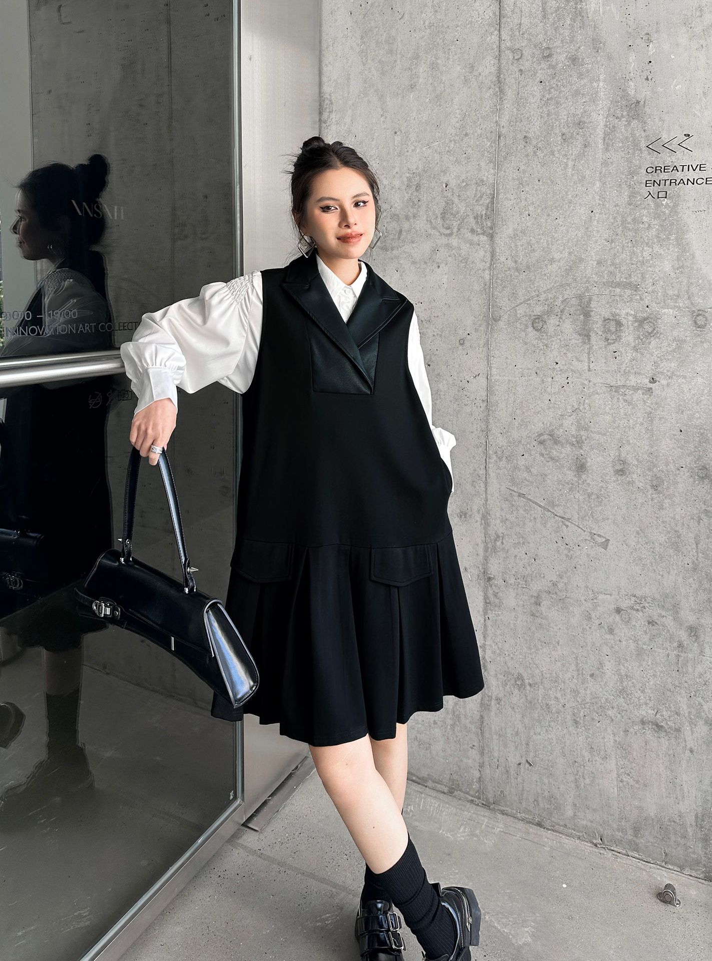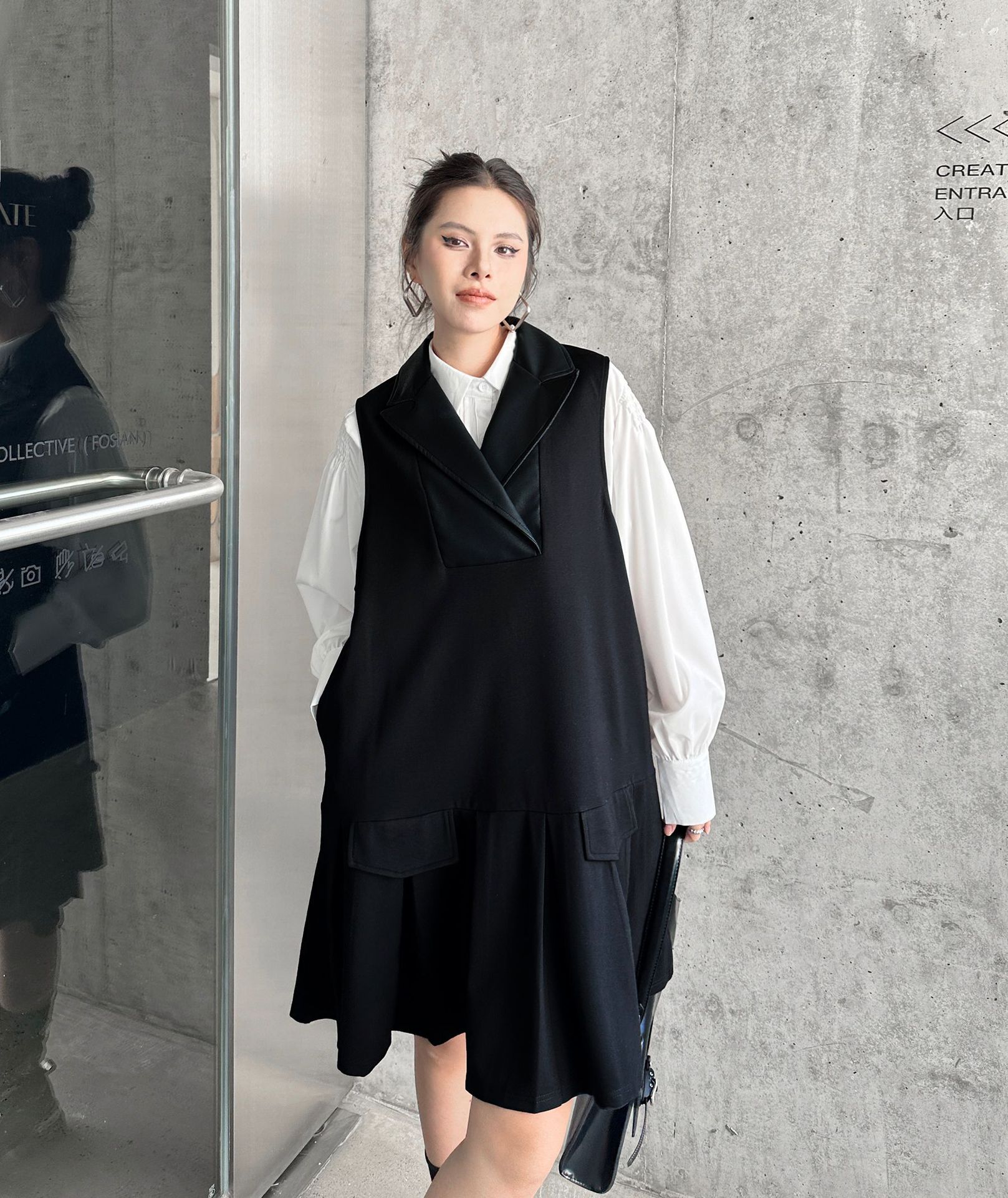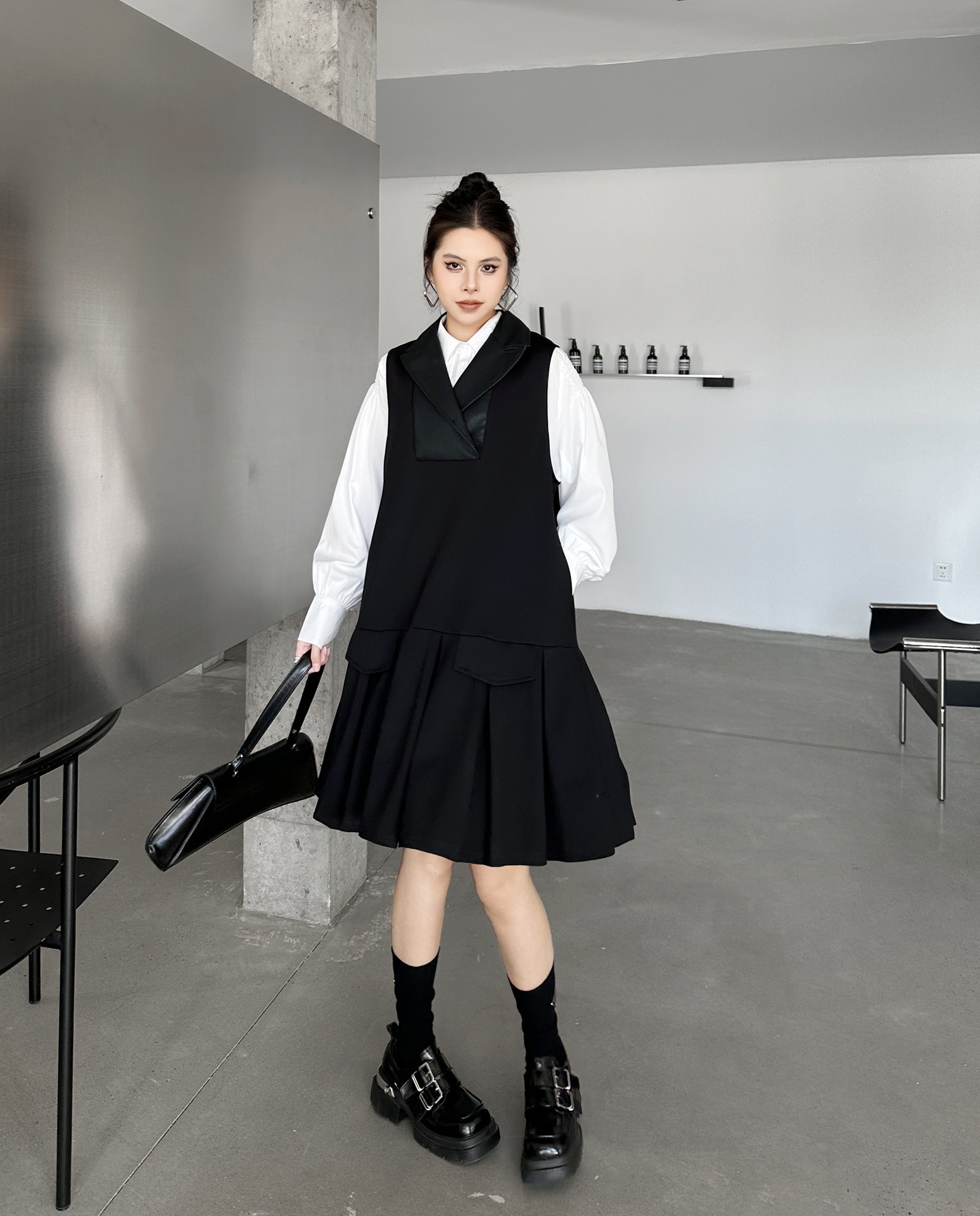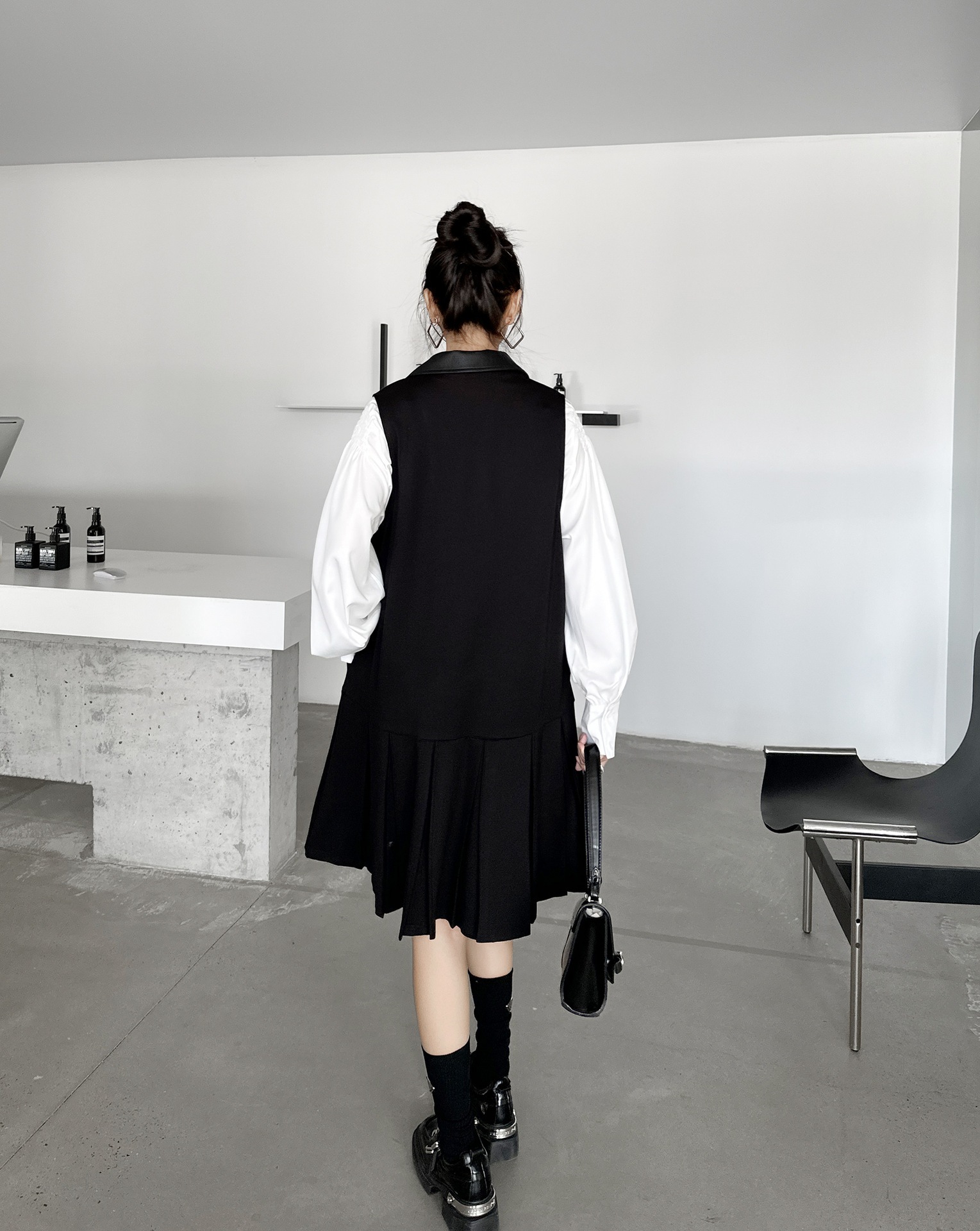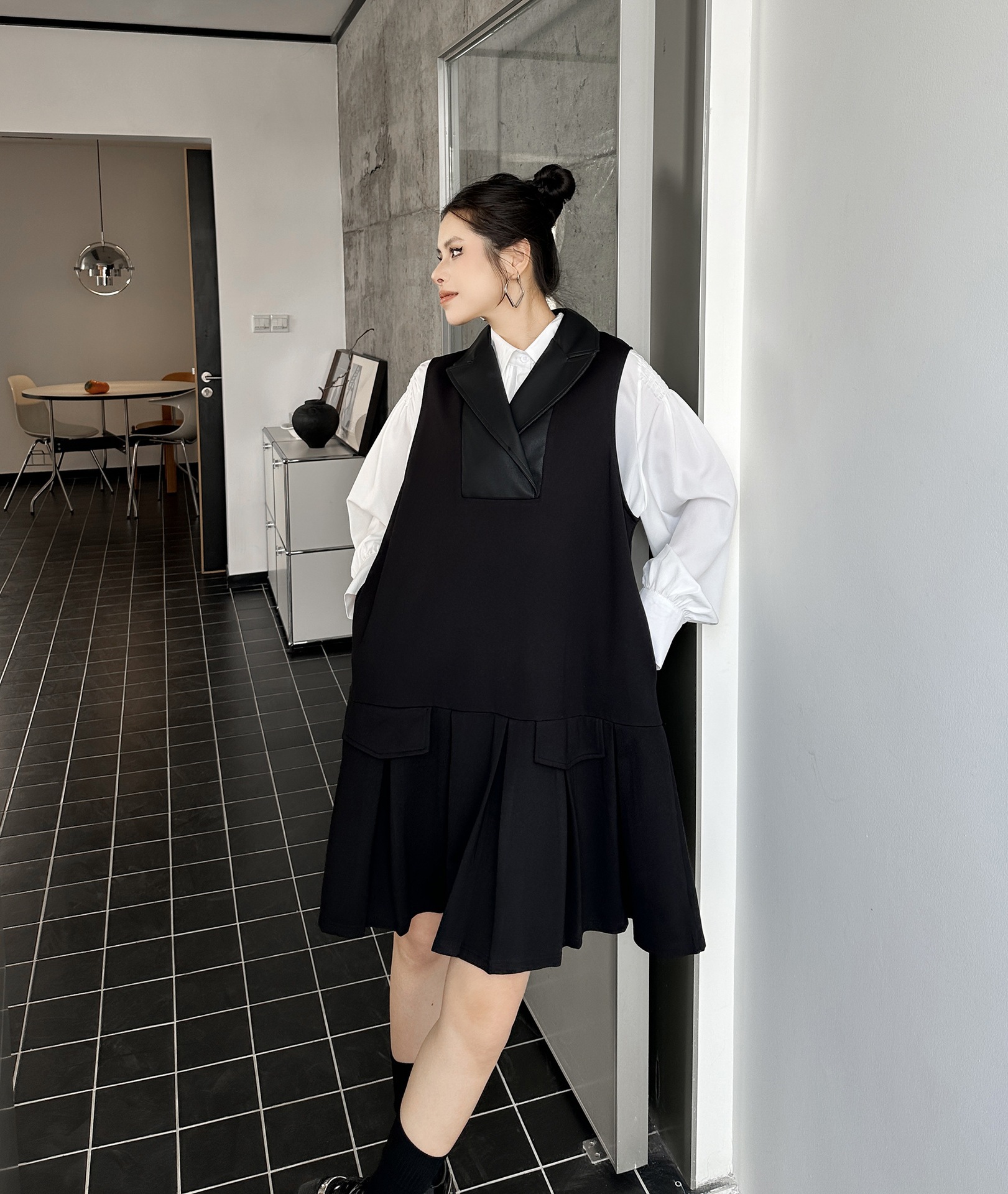 2025春 ミドル丈 ワンピース PUレザードッキング おしゃれ レディース 関連商品購入可能 メガ割 袖なしミニ 膝丈ワンピ