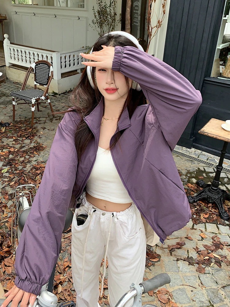 2024春夏 ショート かわいい フル ブルゾン トップス アウター ショート スタンドショート お出かけハイストリートアウター長袖セクシートップスカジュアルファッションお出かけ 秋トラック