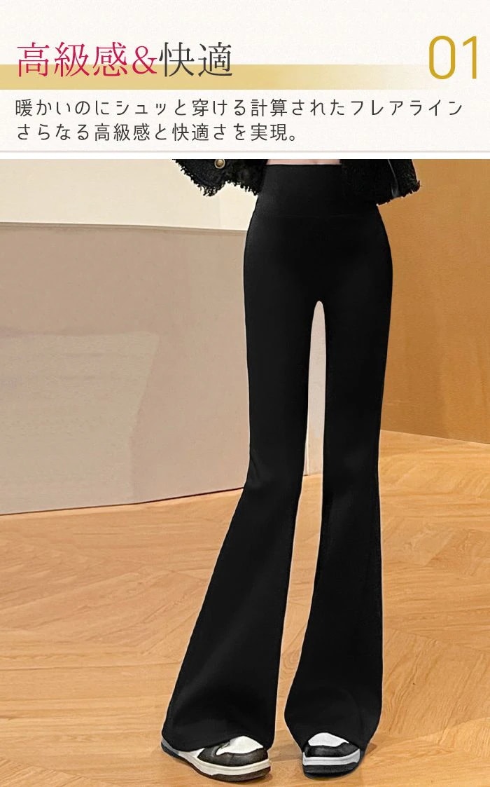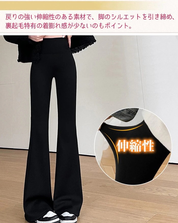 大人気 品質保証裏起毛 フレアパンツ レディース あったかパンツ レギンス レギパン 美脚 防寒 脚長効果 フレア フレアレギパン ハイウエスト 長ズボン ボトムス 黒 ブラック 細見え スタイルアッ