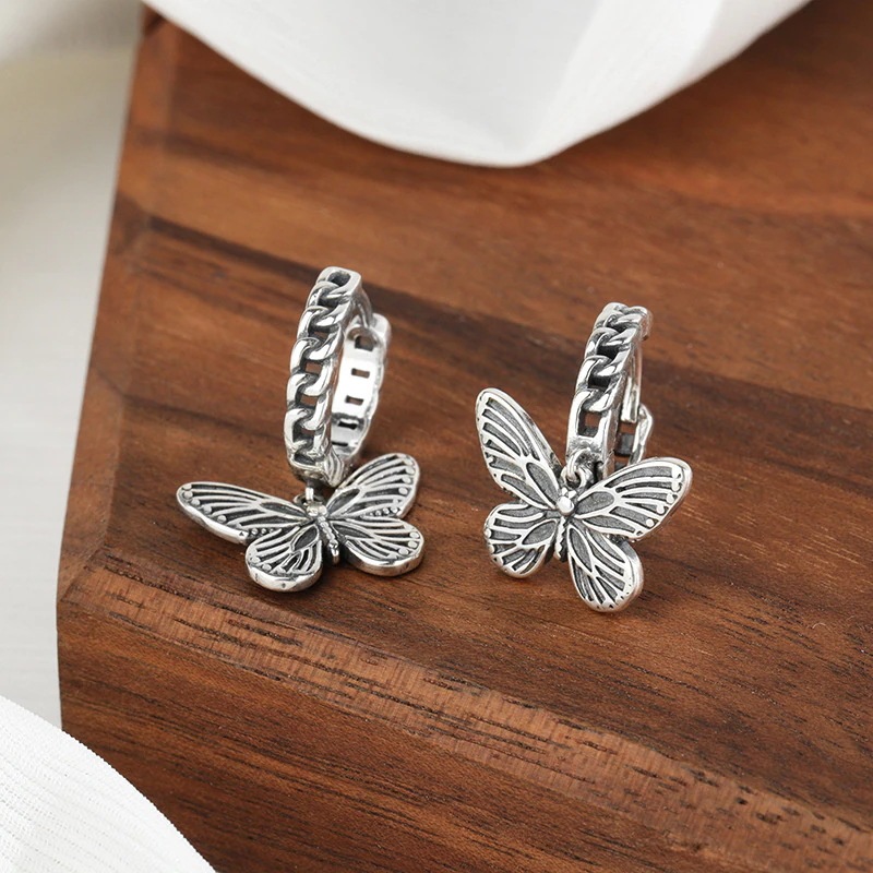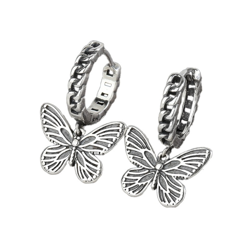 s 925純銀レトロ蝶のイヤリング女パンク冷淡風ダーク蝶のイヤリングピアスイヤリング夏のピアス冬のピアスピアス春の耳元をおしゃれに イヤリング